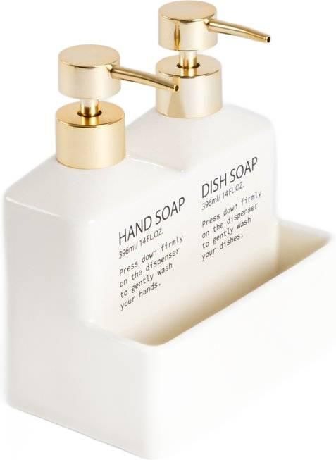 Dozownik EBRO śmietankowy 18x16 cm HOMLA Kod produktu: 233723 Producent: HOMLA Elegancki design w śmietankowym odcieniu Złote pompki dodające luksusowego charakteru Kompaktowe wymiary 18x16 cm Idealny zarówno do kuchni, jak i łazienki Dozownik śmietankowy 18x16 cm Dozownik EBRO to połączenie stylu i funkcjonalności, które świetnie sprawdzi się w każdej kuchni lub łazience. Śmietankowy kolor w zestawieniu ze złotymi pompkami tworzy harmonijną i elegancką całość. Jego nowoczesny design doskonale pasuje do różnorodnych stylów aranżacji, od minimalistycznych po klasyczne. Przeznaczenie Dozownik EBRO sprawdzi się zarówno w kuchni, jak i łazience. Podwójny pojemnik pozwala na wygodne przechowywanie zarówno mydła do rąk, jak i płynu do naczyń, ułatwiając codzienne obowiązki. Materiał Dozownik EBRO został wykonany z trwałej ceramiki, zapewniającej solidność i odporność na codzienne użytkowanie. Precyzyjne wykończenie i wysokiej jakości pompki gwarantują wygodę. podwójny SPECYFIKACJA WYSOKOŚĆ: 18 EAN CECHA: 5906496721649 KOLOR 1: KREMOWY MATERIAŁ 1 %: 100 WYSOKOŚĆ W OPAKOWANIU: 200 KOLOR: KREMOWY NAZWA MARKETINGOWA: EBRO SZEROKOŚĆ W OPAKOWANIU: 180 MARKA: HOMLA WYMIAR: 18x16 cm MATERIAŁ 1: DOLOMIT SEZON: AW25 KONTAKT Z ŻYWNOŚCIĄ: TAK DŁUGOŚĆ: 16 LINIA: BASIC WAGA W OPAKOWANIU: 330 SZEROKOŚĆ: 10 DŁUGOŚĆ W OPAKOWANIU: 180