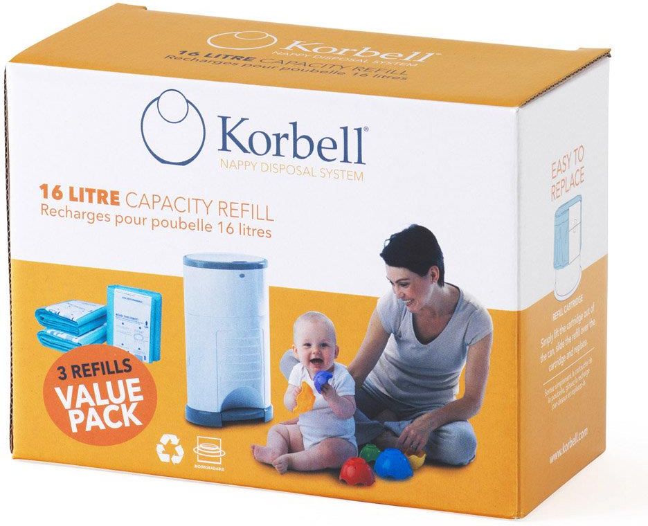 Korbell wkłady do kosza na pieluchy śmieci pojemnika 16l zestaw 3 sztuki T-KOR-250DR3B (64340) Wykonany z wytrzymałego polietylenu o wysokiej gęstości, który nie pozwala na wydostanie się zapachów ani płynów na zewnątrz Bardzo mocny i elastyczny 1 wkład pozwala usunąć od 240 do 495 pieluch (w zależności od rozmiaru pieluszki). Korbell wkłady do pojemnika 16l 3szt. T-KOR-250DR3B Korbell Zestaw wkłady wymienne do pojemnika na pieluchy 15/16l, 3 szt. /na około 720 szt.pieluch Ekologiczny wymienny wkład do kosza na pieluszki Korbell. Elastyczny, mocny i wydajny – pozwala na utylizację od 240 do 495 pieluch (w zależności od rozmiaru pieluszki). Przy wymianie worka nie ma się bezpośredniego dostępu do pieluch, a tym samym do ich zapachu. Przemyślana konstrukcja pozwala na łatwą obsługę oraz komfortowe opróżnianie pojemnika. Nie zużywa się większej ilości folii niż jest to konieczne. Specyfikacja techniczna Wykonany z wytrzymałego polietylenu o wysokiej gęstości, który nie pozwala na wydostanie się zapachów ani płynów na zewnątrz, Bardzo mocny i elastyczny, Szerokość rękawa 34 cm, 1 wkład pozwala usunąć od 240 do 495 pieluch (w zależności od rozmiaru pieluszki). Zestaw: 3 wkłady wymienne Zestaw zawiera Korbell wkłady do pojemnika 16l 3szt. Opakowanie producenta kod produktu:64340 CE42TG
