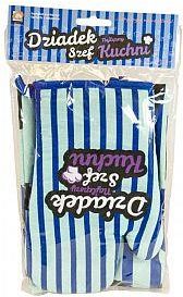 Fartuch + rękawica Dziadek najlepszy szef kuchni Fartuch + rękawica Dziadek najlepszy szef kuchni Fartuszek do gotowania i rękawica kuchenna w komplecie to idealny prezent dla ukochanego kucharza - dziadka. Wesoły wzór i dedykacja sprawi uśmiech na twarzy obdarowanej osoby, a posiłki przygotowywane w kuchni staną sie jeszcze smaczniejsze. Materiał - 100 % bawełny. Oryginalny zestaw prezentowy. Gadżet w skrócie:- fartuch do gotowania + rękawica w komplecie- Zabawna grafika i napisa: Dziadek najlepszy szef kuchni- materiał 100% bawełna- wymiary: fartuch: 70 x 80cm, rękawica: 18 x 28cm- opakowanie foliowe z zawieszką- zabawny pomysł na prezent dla ukochanego dziadka Wymiary produktu: 34 x 18 x 2 cmWaga produktu: 0,190 kgMinimalne zamówienie: 1 sztukaStand/display: brak Kod producenta: 09,419129 Uwaga! Jeżeli w opisie produktu występuje informacja „Sprzedajemy / Wysyłamy jako mix wzorów”, a na zdjęciach pojawiają się różne warianty, jest to skierowane dla zamówień wielosztukowych. Dla pojedynczych sztuk oznacza to wysyłkę losowego wzoru / koloru – Jeżeli zależy Ci na konkretnym wzorze – proszę o informacje podczas zakupu.