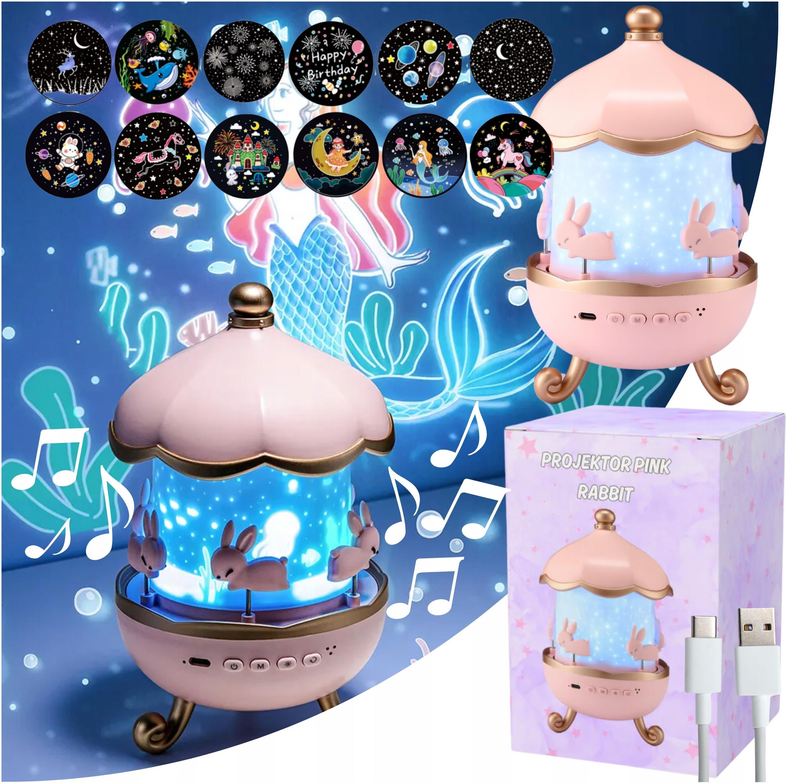 Lampka nocna projektor KARUZELA 12 motywów obrazów bajek gwiazdy Prezent NOWOŚĆ! OBRÓT 360° ⭐ 3 w 1 ⭐ 12 motywów projekcyjnych ⭐ Regulowane światło ⭐ Uroczy design ⭐Kabel USB typu C ⭐ Głośnik ⭐ Bluetooth⭐ Idealna dekoracja IDEALNY NA PREZENT DLA DZIEWCZYNKI Stwórz bajkową atmosferę w pokoju Twojego …