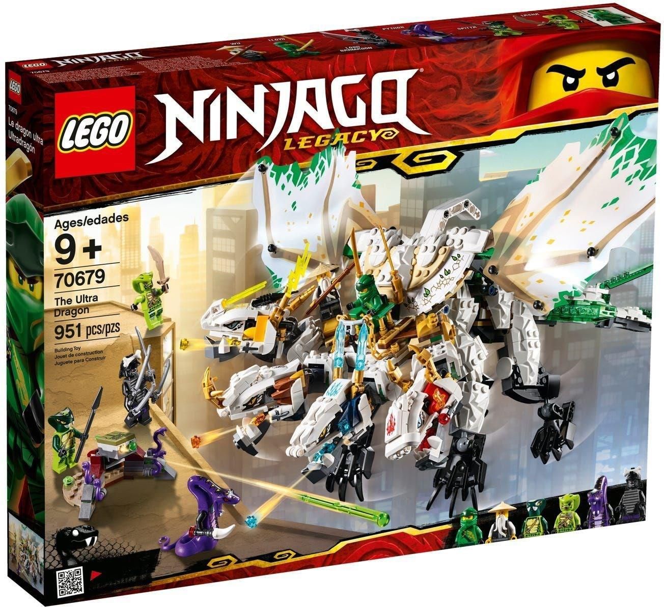 Szczegóły produktu LEGO Ninjago 70679 Ultrasmok Stań do walki ze złym Lordem Garmadonem, Pythorem i Wężonami w zestawie LEGO® NINJAGO® Legacy 70679 Utrasmok! Ten imponujący smok NINJAGO ma kokpit z miejscem na dwie minifigurki, cztery głowy z miotaczami klocków i kłapiącymi szczękami, …