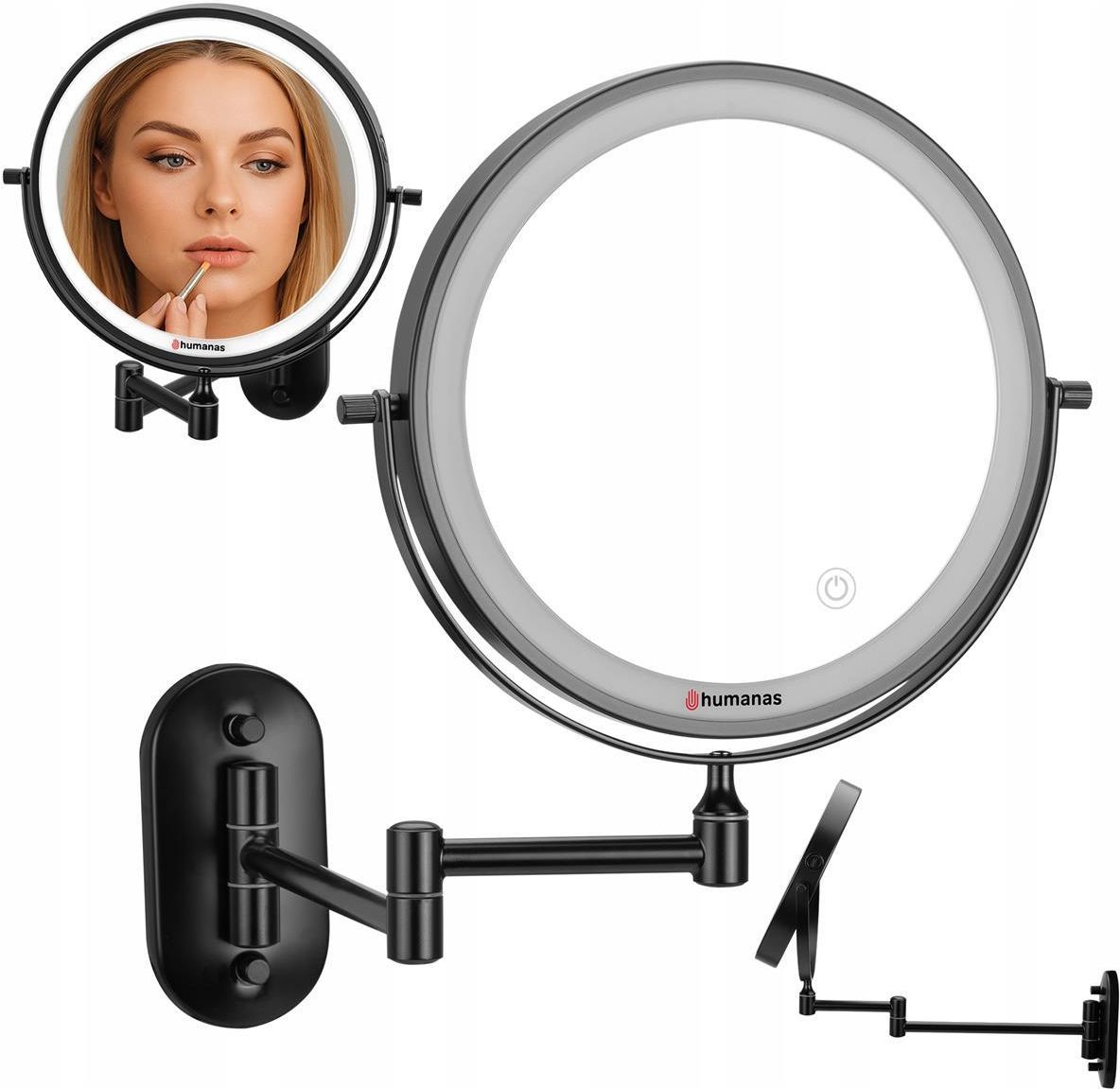 Lustro łazienkowe Humanas HS-BM01 z podświetleniem LED - czarne Dobre Miasto