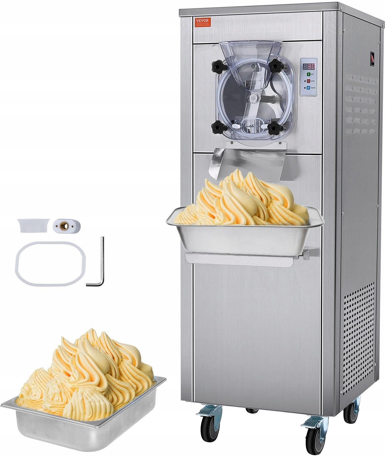 Maszyna do robienia lodów 18l/h Produkt spełnia najwyższe standardy jakości Obsługujemy jednostki budżetowe Komercyjna maszyna do lodów może produkować do 18 litrów lodów na godzinę, działając efektywnie w temperaturach otoczenia od 5 do 32°C. Wyposażona w zaawansowany kompresor, maszyna ta oferuje funkcje szybkiego oraz wstępnego chłodzenia, umożliwiając przygotowanie lodów w zaledwie 20 minut. Wymiary w cm wysokość : 140 szerokość : 76 długość : 53 Doskonała konsystencja lodów Dzięki cylindrowi chłodzącemu o pojemności 6 litra, zaawansowanej technologii rozdmuchiwania i szybkoobrotowemu potrójnemu mikserowi, maszyna do lodów gwarantuje kremową i jedwabiście gładką konsystencję każdej porcji, co z pewnością zachwyci każde podniebienie. Prosta i intuicyjna obsługa Maszyna do lodów na twardo jest wyposażona w cyfrowy panel sterowania z rozbudowanymi funkcjami, które znacznie upraszczają obsługę. Z łatwością ustaw automatyczne chłodzenie, rozpocznij proces czyszczenia jednym kliknięciem i dostosuj ustawienia czasu. Monitorowanie czasu produkcji i pozostałej ilości lodów jest banalnie proste dzięki intuicyjnemu wyświetlaczowi. Trwałość i solidność konstrukcji Wykonana z wysokiej jakości stali nierdzewnej SUS201 i wyposażona w cylinder chłodniczy ze stali nierdzewnej SUS304, dopuszczony do kontaktu z żywnością, maszyna do lodów jest nie tylko solidna i odporna na rdzę, ale również łatwa do czyszczenia. Dzięki tym cechom maszyna zapewnia bezpieczeństwo żywności i długotrwałe użytkowanie. Wszechstronne zastosowania Zaprojektowana z myślą o wszechstronności, komercyjna maszyna do lodów doskonale sprawdza się w produkcji różnorodnych przekąsek na bazie lodów, takich jak rożki, gofry i ciasta. Idealnie komponuje się z ofertą lodziarni, kawiarni, barów z napojami oraz małych stoisk z jedzeniem, dodając uroku każdej przestrzeni komercyjnej. Specyfikacje Temperatura robocza: 5-32°C Efektywność produkcji lodów: 18 l Pojemność cylindra: 6 l Poziom hałasu: ≤66 dB Materiał zbiornika: Stal nierdzewna 304 Główny materiał: Stal nierdzewna 201 Waga netto: 90,2 kg Nasz zespół składa się z doświadczonych profesjonalistów, którzy są gotowi służyć Państwu radą i pomocą na każdym etapie współpracy.