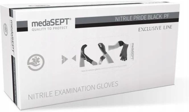Rękawiczki nitrylowe Nitrile Black PF 100 szt. XL medaSEPT, Rękawiczki nitrylowe Nitrile Prefer Black PF, 100 szt. medaSEPT, rękawiczki nitrylowe Nitrile Prefer Black PF stanowią skuteczną ochronę mechaniczną dla personelu medycznego i pacjentów. Zapewniają nie tylko barierę przed przenikaniem drobnoustrojów, ale również znacząco zmniejszają ryzyko zakażenia różnymi chorobami, takimi jak HIV, wirusowe zapalenie wątroby typu B i C, oraz wiele innych. Ich zastosowanie obejmuje przede wszystkim badania lekarskie oraz inne procedury diagnostyczne. Rękawiczki nie zawierają lateksu, dlatego nadają się dla osób uczulonych na to tworzywo. Cechują się odpornością na rozerwania i dobrze dopasowują się do dłoni. Nie są pudrowane. Cechy produktu: wyrób medyczny klasy I, środek ochrony indywidualnej kat. III typu B, wyprodukowane zgodnie z normami, nitrylowe, bezpudrowe, w kolorze czarnym, uniwersalny kształt pasujący na obie dłonie, rolowany mankiet, chlorowana powierzchnia zewnętrzna, teksturowana powierzchnia końcówek palców, odpowiednie do kontaktu z żywnością, testowane pod kątem przepuszczalności wody - AQL 1.0.* Rękawiczki medaSEPT Nitrile Prefer Black PF wykazują odporność chemiczną oraz odporność na bakterie, wirusy, grzyby i cytostatyki. * AQL (ang. Acceptance Quality Limit, czyli Limit Akceptowalnej Jakości) to najbardziej istotny parametr rękawic medycznych. Oznacza ilość mikrodziurek w materiale rękawiczek badany za pomocą testu wodnego. AQL dobrej jakości rękawic powinien wynosić maksymalnie 1,5 - oznacza to, że na 1000 ml wody wykryto w materiale dziury mniejsze niż 25-50 µm. Im niższa wartość AQL, tym wyższy poziom bezpieczeństwa. Przykładowo, rękawiczka o AQL 1,5 będzie bardziej szczelna niż ta o wskaźniku 2. Typ: Rękawiczki Rękawiczki: Nitrylowe Pudrowanie: Nie Kolor: Czarny Rodzaj: Jednorazowe Wyrób medyczny: Tak