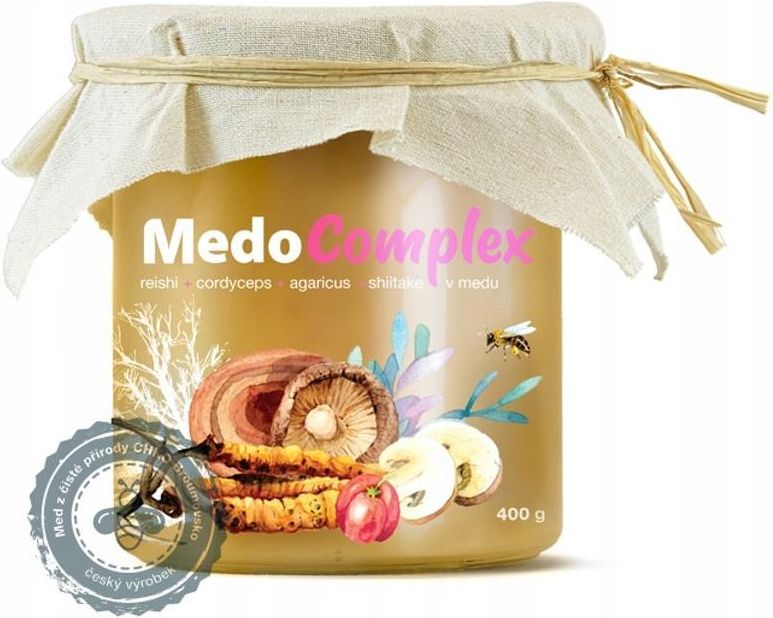 MycoMedica MedoComplex 400g Miód Cordyceps Reishi W produkcie MycoMedica MedoComplex 400g Miód Cordyceps Reishi wykorzystane zostały naturalne skarby Tradycyjnej Medycyny Chińskiej oraz najwyższej jakości czeski miód! Miód został wzbogacony o ekstrakty z grzybów: Agaricus, Cordyceps, Reishi i Shiitake. Wszystkie składniki działaja synergicznie, a ich zadaniem jest skuteczne wspieranie odporności uzupełniając energię. Miód, Cordyceps, Reishi – działanie: pomaga wzmocnić odporność i zregenerować się po chorobie, wspomaga organizm w przypadku kaszlu i duszności, wspomaga organizm w leczeniu alergii, wpływa na prawidłowy stan zdrowia fizycznego i psychicznego, stanowi terapię uzupełniającą w leczeniu nowotworów, pomaga wzmocnić serce i wspomaga krążenie, wspomaga sprawność seksualną, zwiększa wytrzymałość fizyczną, dodaję energii, pomaga w zaburzeniach snu, przy stanach lękowych i depresji, harmonizuje psychikę. MycoMedica MedoComplex 400g Miód Cordyceps Reishi – działanie według TCM Termika: neutralna Smak: słodki i lekko gorzki Tropizm: Serce, Wątroba i Płuca Agaricus: ciepły – słodki/lekko ostry – Śledziona, Żołądek, Jelita Cordyceps: ciepły – słodki – Płuca, Nerki Reishi: neutralny – słodki/lekko gorzki – Serce, Wątroba, Płuca. Transformuje Śluz, dopełnia Qi i odżywia Krew Shiitake: neutralny – słodki – Żołądek, Śledziona, Płuca Grzyb Reishi właściwości zdrowotne Reishi to jeden z grzybów, który ma właściwości lecznicze znane i cenione już od tysięcy lat, zwłaszcza w medycynie chińskiej i japońskiej. Grzyb reishi ma wiele wyjątkowych związków, które mogą pomóc w różnorodnych dolegliwościach, a w szczególności na zawroty głowy, w chorobach serca, na astmę, zapalenie oskrzeli, bezsenność, w leczeniu depresji itp. Ponadto udowodniono także, że grzyb Reishi zmniejsza poziom cholesterolu i chroni wątrobę przed uszkodzeniem. Najważniejszymi substancjami, które zawierają grzyby reishi są beta-glukany, które wspomagają regenerację układu odpornościowego oraz polisacharydy, które mają działanie przeciwwirusowo. W ostatnich latach badania wykazały, że polisacharydy mogą także wspierać naturalną zdolność organizmu do zwalczania komórek rakowych. Grzyby reishi dostarczają bardzo dużej dawki silnych przeciwutleniaczy, a te z kolei chronią komórki przed stresem oksydacyjnym oraz opóźniają starzenie się organizmu. pomaga wzmocnić odporność i zregenerować się po chorobie, wspomaga organizm w przypadku kaszlu i duszności, wspomaga organizm w leczeniu alergii, polecany kobietom z dolegliwościami związanymi z menopauzą i miesiączką, wpływa na prawidłowy stan zdrowia fizycznego i psychicznego, stanowi terapię uzupełniającą w leczeniu nowotworów, pomaga wzmocnić serce i wspomaga krążenie, pomaga w zaburzeniach snu, przy stanach lękowych i depresji, harmonizuje psychikę. Dowiedz się więcej Obejrzyj wykład prowadzony przez mgr Małgorzatę Koszyk – specjalistkę od medycyny orientalnej, który poświęcony jest właściwościom grzyba Reishi oraz jego zastosowaniu w Tradycyjnej Medycynie Chińskiej (TCM). Cordyceps – właściwości zdrowotne Cordyceps Sinensis (maczużnik chiński) to jeden z najcenniejszych grzybów, znany od wieków, używany głónie jako lek na różne choroby, takie jak astma, rak, zespół przewlekłego zmęczenia i wysoki poziom cholesterolu. Cordyceps był szeroko badany pod kątem jego właściwości leczniczych i stwierdzono, że ma działanie przeciwzapalne i immunomodulujące. Zawiera również naturalne cukry, które przyczyniają się do słodkiego smaku kordycepsu. Jest bogaty w beta-glukany, które uważa się za jeden z głównych powodów, dla których cordyceps sinensisma tak wiele cennych właściwości leczniczych. Beta-glukany to błonnik pokarmowy, który promuje wzrost przyjaznych bakterii w jelitach, które mogą pomóc w różnych chorobach, takich jak cukrzyca i stany zapalne. Zawiera również makroskładniki, w postaci białek i minerałów, które mogą pomóc we wzroście mięśni. Cordyceps sinensis to również źródło polisacharydów, które pomagają zwalczać zmęczenie i stres, wzmacniając naturalną odpowiedź układu odpornościowego na stresory, takie jak toksynyCordyceps sinensis zwiększa również energię, wytrzymałość oraz libido, dzięki wysokiej zawartości różnych aminokwasów, takich jak prolina, glutamina i arginina. Pomaga wzmocnić odporność, Dodaje energii i pomaga wzmocnić wytrzymałość, Pomaga leczyć niepłodność (zwiększa libido), Pomaga pozbyć się flegmy i kaszlu, Wspomaga leczenie depresji i stanów lękowych. Składniki najwyższej jakości – gwarantowana skuteczność Suplementy diety MycoMedica zawiera wysokiej jakości grzyby, które uprawiane są w nietkniętych przez cywilizację chińskich prowincjach Fujian i Jiangxi, słynące ze swoje nieskażonej przyrody. Grzyby są testowane w laboratoriach w Niemczech na obecność pestycydów, metali ciężkich, mikroorganizmów, szkodliwych grzybów i promieniowania, aby mieć pewność, że są one od nich wolne i w pełni bezpieczne dla konsumentów. W tych samych laboratoriach grzyby testowane są, aby zawierały wyłącznie najwyższej jakości polisacharydy grzybowe, które gwarantują ich prozdrowotne właściwości. Certyfikowany ekologiczny miód Do produkcji MycoMedica MedoComplex 400g Miód Cordyceps Reishi użyty został miód kwiatowy z pasieki w Rokytníku (Včelí farma Rokytník), czyli z nieskażonego ekologicznego i unikalnego obszaru chronionego krajobrazu CHKO Broumovsko, co oznacza, że teren nie jest obciążony przemysłem. Pasieka otrzymała wiele nagród, ponadto posiada także ważny znak Produkt regionalny. Miód jest doskonałym pokarmem korzystnym dla organizmu, warto po niego sięgnąć nie tylko w przypadku problemów związanych z nadejściem zimy, ale tak