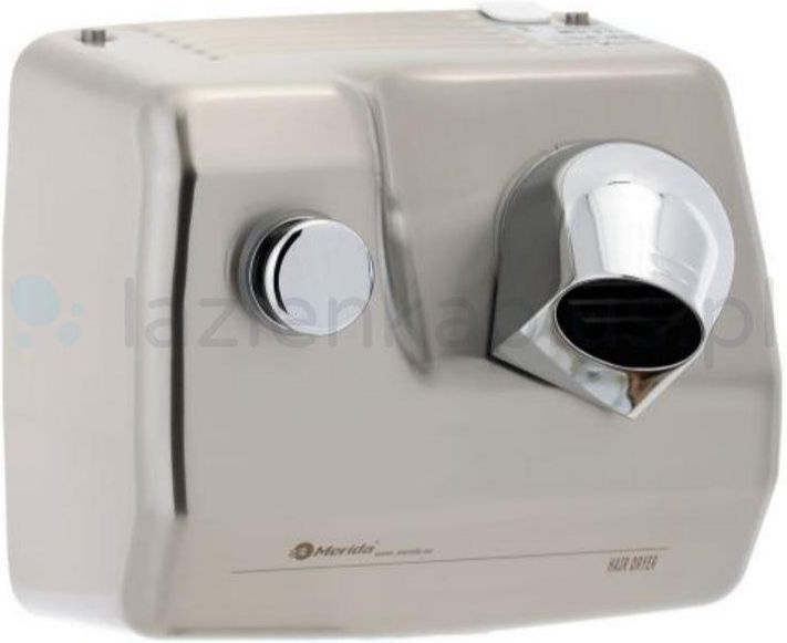 Suszarka basenowa do włosów 2250W Merida stal szlachetna matowa EIM585 Czas jednego cyklu pracy: 60 s Obudowa wykonana ze stali nierdzewnej matowej Moc wyjściowa: 2250 W Grubość podstawy aluminiowej – 3mm Uruchamiana przyciskiem (sterownik czasowy elektryczno-mechaniczny) Maksymalna moc i odporność na akty wandalizmu Przeznaczona do pomieszczeń o wysokim natężeniu ruchu Obudowa przymocowana do tylnej ścianki przy pomocy 2 odpornych na akty wandalizmu śrub Zamykana specjalnym kluczem nasadowym Wentylator ognioodporny wykonany z plastiku UL94-VO Uniwersalny silnik klasy F zawierający bezpiecznik termiczny Aluminiowa odśrodkowa turbina z podwójnym asymetrycznym wlotem Element grzewczy zabezpieczony włącznikiem chroniącym suszarkę przed przegrzaniem Ogranicznik temperatury Chromowany wylot wykonany z zamaku (cynkowy odlew ciśnieniowy) Przycisk wykonany z zamaku Dane techniczne Obudowa: stal nierdzewna Kolor: stal matowa Moc znamionowa: 2250W Zasilanie: 220V-230V Czas suszenia: 60 s Prędkość powietrza: 96 km/h Poziom hałasu: 70 dB Bryzgoszczelność: IP23 Wymiary Wysokość: 255 mm Szerokość: 280 mm Głębokość: 245 mm