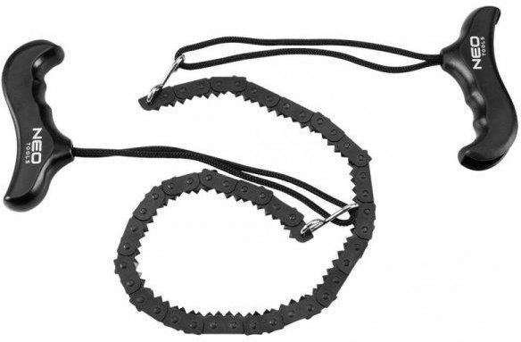 Piła ręczna łańcuchowa, 53cm Piła ręczna łańcuchowa, 53 cm 63-158 marki NEO to narzędzie wyposażone w ostrze ze stali manganowej o twardości 52-52 HRC. Posiada uchwyt ABS, a jego pełna waga to 150 g. Długość całej piły wynosi 98 cm, z kolei długość ostrza to 53 cm. Narzędzie uzbrojone zostało w …