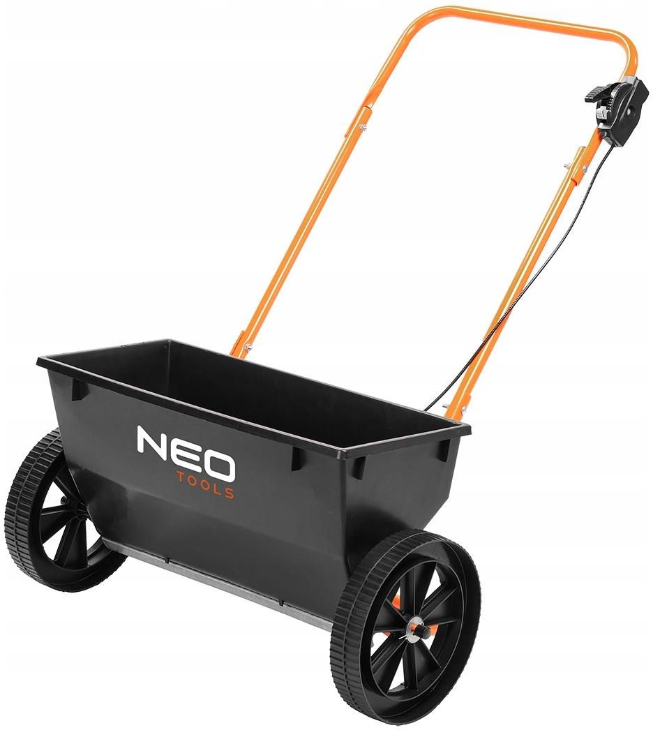 Siewnik ogrodowy NEO TOOLS 25 l / do 23 kg Wydajna praca na większych powierzchniach Duża pojemność 25 litrów pozwala pracować dłużej bez częstego dosypywania materiału, co wyraźnie przyspiesza realizację prac w ogrodzie i wokół domu. Ładowność do 23 kg sprawia, że siewnik doskonale radzi sobie zarówno z nasionami, jak i nawozem, solą czy piaskiem. Szerokość rozsypywania 50 cm zapewnia równomierne pokrycie powierzchni, dzięki czemu szybciej obsiejesz lub rozsypiesz materiał na wybranym terenie. To praktyczne rozwiązanie dla osób, które cenią oszczędność czasu, wygodę użytkowania i precyzję działania. Precyzyjne dozowanie materiału 10-stopniowa regulacja dozowania pozwala dokładnie dopasować ilość wysiewanego materiału do konkretnego zastosowania. Wygodna dźwignia regulacyjna umożliwia szybką zmianę ustawień w trakcie pracy, bez zbędnych przestojów. Siewnik sprawdzi się przy rozsypywaniu nasion trawy, nasion kwiatów, warzyw, nawozów granulowanych, soli oraz piasku. Precyzyjny mechanizm dozowania pomaga ograniczyć straty materiału i wspiera bardziej efektywną oraz ekonomiczną pracę. Komfort prowadzenia i stabilność Duże koła o średnicy 25 cm ułatwiają płynne prowadzenie siewnika nawet po mniej równym terenie. Stabilna konstrukcja poprawia kontrolę nad urządzeniem, co przekłada się na wygodne manewrowanie i równomierny wysiew. Siewnik został zaprojektowany z myślą o codziennej wygodzie, dlatego dobrze sprawdza się podczas pracy na trawnikach, działkach, podjazdach i alejkach. To narzędzie, które łączy ergonomię użytkowania z praktyczną funkcjonalnością przez cały rok. Uniwersalne zastosowanie przez cały rok Idealny do siania trawy na trawnikach przydomowych oraz większych terenach zielonych. Doskonały do wysiewu nasion kwiatów ozdobnych na rabatach i w ogrodach dekoracyjnych. Sprawdzi się podczas siania warzyw w ogródkach przydomowych i na działkach. Umożliwia równomierne nawożenie trawników oraz upraw przy użyciu nawozów granulowanych. W sezonie zimowym nadaje się do rozsypywania soli na chodnikach, podjazdach i alejkach. Może być używany również do rozsypywania piasku, poprawiającego przyczepność na śliskich i oblodzonych nawierzchniach. Solidna i trwała konstrukcja Wytrzymały materiał wykonania zapewnia odporność na intensywne użytkowanie w różnych warunkach. Mocna konstrukcja została przygotowana do pracy z różnymi rodzajami materiału sypkiego, co zwiększa jej uniwersalność. Wymiary 815 x 695 x 815 mm gwarantują odpowiednią stabilność oraz komfort obsługi podczas pracy. To praktyczny wybór dla użytkowników, którzy szukają trwałego, pojemnego i wszechstronnego siewnika ogrodowego. Parametry techniczne Marka: NEO TOOLS Rodzaj produktu: siewnik ogrodowy Pojemność zbiornika: 25 l Ładowność: do 23 kg Szerokość rozsypywania: 50 cm Regulacja dozowania: 10-stopniowa, za pomocą dźwigni Średnica kół: 25 cm Zastosowanie: nasiona, nawóz, piasek, sól Wymiary: 815 x 695 x 815 mm Przeznaczenie: całoroczne prace ogrodowe i porządkowe