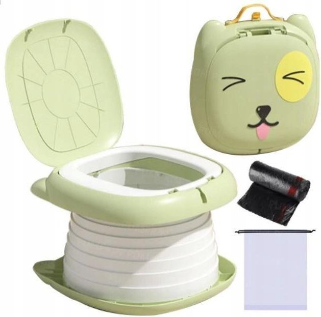 NOCNIK TURYSTYCZNY PRZENOŚNY WC SKŁADANY PODRÓŻNY KEMPINGOWY LEKKI + WORKI Praktyczny i lekki przenośny nocnik dla dzieci o składanej konstrukcji, który sprawdzi się zarówno w domu, jak i w podróży. Dzięki kompaktowym wymiarom i funkcji składania, łatwo zmieścisz go w torbie lub plecaku. Dla dzieci od 1 roku życia 👜 Łatwy do przenoszenia – wyposażony w uchwyt Szybki montaż i demontaż 🗑️ W zestawie woreczki higieniczne Specyfikacja Wymiary rozłożonego WC: 24 cm x 24,5 cm x 17 cm Wymiary złożonego WC: 24 cm x 24,5 cm x 5 cm Maksymalne obciążenie: 50 kg Materiał: tworzywo sztuczne Kolor: zielony z motywem zwierzątka (miś) Waga: około 0,5kg Zalety Składany – zajmuje mało miejsca, idealny do walizki lub bagażu podręcznego 🌟 Łatwy do czyszczenia 🌟 Stabilna konstrukcja 🌟 Przeznaczony do użytku z jednorazowymi workami higienicznymi 🌟 Wbudowany schowek na rolkę worków 🌟 Przyjazny dzieciom design – sympatyczny miś zachęca do korzystania Zestaw zawiera Przenośne WC / nocnik Rolka worków higienicznych Torba do przechowywania i transportu Idealny na każdą okazję Podróże samochodem Kemping i biwak Plaża Wypady do parku Codzienne spacery Szybki montaż – rozłożenie w kilka sekund bez użycia narzędzi