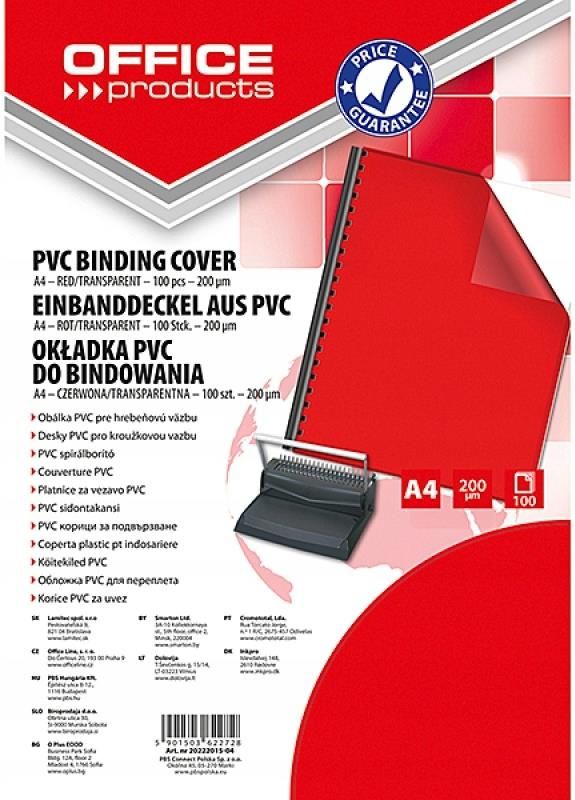 Okładki do bindowania OFFICE PRODUCTS transparentne A4 czerwone 100szt. - wysokiej jakości okładki do oprawy dokumentów. Bezpieczne zakupy oraz szybka dostawa. Dostępne w dlabiura24.pl - zobacz i kup teraz!