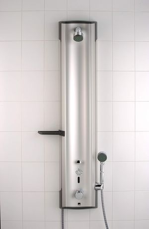 Bezdotykowy panel prysznicowy z termostatem wyposażony jest w dwie głowice natryskowe: górną, stanowiącą integralną część panela oraz dolną, umieszczoną w zdejmowanej rączce prysznica. Panel zasilany jest 12 V prądem elektrycznym z oddzielnego transformatora (np. Magistrala Oras nr 199099). Panel wykonany jest z aluminium i tworzywa sztucznego.Pojawienie się ręki w zasięgu sensora powoduje uruchomienie prysznica. Woda płynie tak długo, jak długo użytkownik przebywa pod natryskiem. Odejście spod prysznica powoduje automatyczne zamknięcie wypływu wody. Przy pomocy Data Terminal, można ustawić wszystkie parametry, odczytać zgromadzone dane i wykonywać inne operacje serwisowe. Wyposażenie dodatkowe: mydelniczka (Oras nr 199880) i uchwyt (Oras nr 199881) są sprzedawane oddzielnie. Posiada: znak budowlany B , atest PZH, deklarację zgodności.Atest Higieniczny PZH HK/W/0904/01/2008 Ciśnienie robocze 100 - 1000 kPa EMC Directive 89/336/EEC Klasa bezpieczeństwa IP 45 Klasa głośności I (ISO 3822) Max czas przepływu 5 min (0 - 30 min) Nateżenie przepływu przy 300 kPa (Bez regulatora przeplywu) 0.22 l/s Natężenie przepływu przy 300 kPa (Z regulatorem przepływu) 0.17 l/s Opóżnienie zamknięcia 5 s (0 - 255 s) Podłączenie elektryczne 12 VDC Woda ciepła zasilająca max. 70C Zasięg działania 50 cm (30 - 70 cm) Zasięg otwarcia 0 - 5 cm