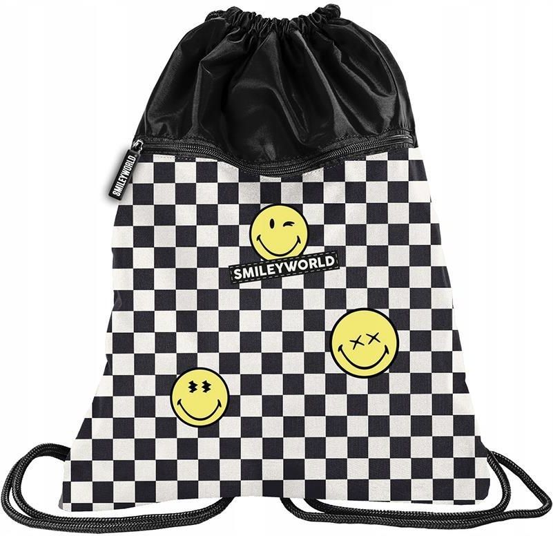 Worek szkolny na buty worko plecak z kieszenią Paso Smiley szachownica czarny w kratę Worek szkolny na buty premium. Worek zamykany jest ściągaczem, dzięki czemu dostęp do zawartości jest łatwy i szybki. Wyposażony jest w dodatkową kieszeń na zamek, w której można zmieścić kilka niezbędnych drobiazgów. Grube, plecione sznurki ściągające, umożliwiają noszenie worka na plecach lub na ramieniu. Tył worka jest usztywniony i pokryty siatką. Oferujemy atrakcyjne wzornictwo, nie zapominając o tym, by oferować solidne i praktyczne produkty, które sprawdzą się w każdych warunkach. ✅ Waga: 200 gramów ✅ Wymiary: 46×37 cm ✅ Materiał: polyester