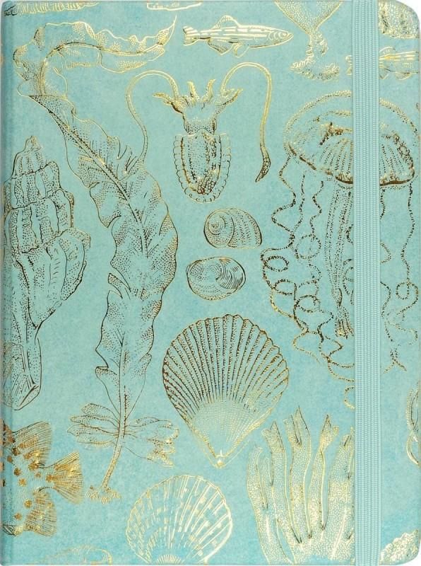 Notatnik Midi Morskie Życie Peter Pauper Press. Peter Pauper Press to marka od wielu lat kojarzona z ekskluzywnymi artykułami papierniczymi. Przepiękne kolekcje notatników o artystycznym wzornictwie z najwyższej jakości kartkami z papieru bezkwasowego. Szeroka oferta formatów oraz wykończeń bez problemu zaspokoi wyszukane gusta. Modny notatnik w formacie zbliżonym do A5 o kompaktowych wymiarach. Wyjątkowo urzekający projekt składa się z delikatnie przedstawionych motywów wodnych - paproci, muszli, meduz i nie tylko - obrysowanych i ozdobionych złotą folią.Matowa okładka pokryta jest bladym tropikalnym błękitem.Okładkę notesu zdobi elegancka kompozycja inspirowana tematyką morską, . Wzór jest wytłoczony i ozdobiony przypominającymi klejnoty drobinkami złotej folii. Kremowe kartki z papieru bezkwasowego o najwyższej klasie odporności na starzenie się, świetnie przyjmują długopis i pióro. Zamykany na niebieską elastyczną gumkę. Kartki szyte. 160 stron w linię. Wysokość: 210 mmSzerokość:159 mm Notatnik przeznaczony do codziennego użytku, jako prezent i nagroda. Produkcja: USA Kod producenta: 2264