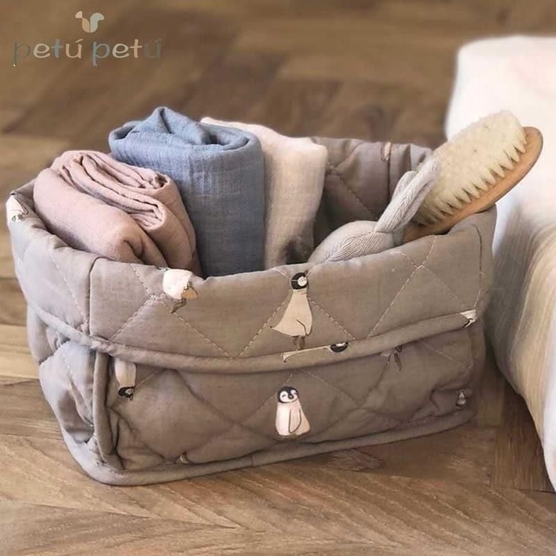 Piękny, pikowany ozdobnie, pojemnik na pieluszki i inne akcesoria niemowlęce duńskiej marki Petu Petu. Stonowane kolory pasują do wielu wnętrz i dodają im uroku. Do pojemników dobierz inne dodatki, które podkreślą ten sam design. WYMIARY wysokość 17 cm długość 15 cm szerokość 12 cm MATERIAŁ zewnętrznie: 100% bawełny wypełnienie: poliester CERTYFIKATY Oeko-Tex 100 WAŻNE ! Uszkodzenia tkanin i produktów tekstylnych powstałe podczas i w wyniku użytkowania [pranie, prasowanie, wybielanie i suszenie] nie są podstawą do reklamacji. Produkty zostały wykonane zgodnie z rygorystycznymi metodami certyfikacji. Materiały użyte do produkcji produktów cechuje wysoka jakość. Petú Petú to duńska marka akcesoriów dla dzieci, wyróżniająca się wysoką jakością wykonania produktów. Petú Petú to bezpieczne dla dzieci materiały, oryginalne wzornictwo i skandynawski pragmatyzm. W ofercie Petú Petú znajdziemy tekstylia dla Najmłodszych, wyposażenie pokoiku i zabawki sensoryczne. Akcesoria niemowlęce duńskiej marki Petú Petú to skandynawski design i wysoka jakość wykonania w przystępnej cenie.