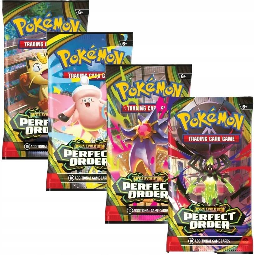 Pokemon TCG: Mega Evolution - Perfect Order - Booster (1szt) Pokémon TCG: Mega Evolution – Perfect Order – Booster (1 szt.) EAN: 196214137110 Wersja językowa: angielska Stan: fabrycznie nowy, oryginalnie zapieczętowany Opis produktu Odkryj potęgę Mega Ewolucji w najnowszym rozszerzeniu Pokémon TCG: Mega Evolution – Perfect Order ! W każdym boosterze możesz trafić na karty związane z legendarnym Mega Zygarde ex , a także Pokémonami takimi jak Mega Clefable ex , Mega Starmie ex czy Meowth ex . To idealny sposób, aby rozbudować swoją kolekcję i wzmocnić talie o nowe strategie. UWAGA Oferta dotyczy 1 sztuki boostera W serii występują 4 różne grafiki (artworki) – wysyłane losowo. Zawartość pojedynczego boostera Każdy booster zawiera: 10 kart do gry Pokémon TCG 1 kartę Energii 1 kod do Pokémon TCG Live Całe rozszerzenie liczy ponad 120 kart , w tym nowe EX, Mega EX, karty trenerów i unikalne ilustracje. Dlaczego warto? Idealny sposób na rozszerzenie kolekcji bez kupowania całego boxa. Szansa na trafienie nowych Mega Ewolucji, w tym Mega Zygarde ex. Produkt w 100% oryginalny, zapieczętowany przez The Pokémon Company International. Świetny wybór dla graczy, kolekcjonerów i fanów serii. Informacje producenta Producent: The Pokémon Company International Druk: Holandia Rok wydania: 2026 EAN boostera: 196214137110 Dla kogo? Kolekcjonerzy ✔ Gracze budujący talie ✔ Fani Mega Ewolucji ✔ Osoby chcące kupić pojedynczy booster zamiast całego boxa Hasło serii Secret Powers Awaken! Poczuj puls miasta i odkryj potęgę Mega Ewolucji w świecie Pokémon TCG.