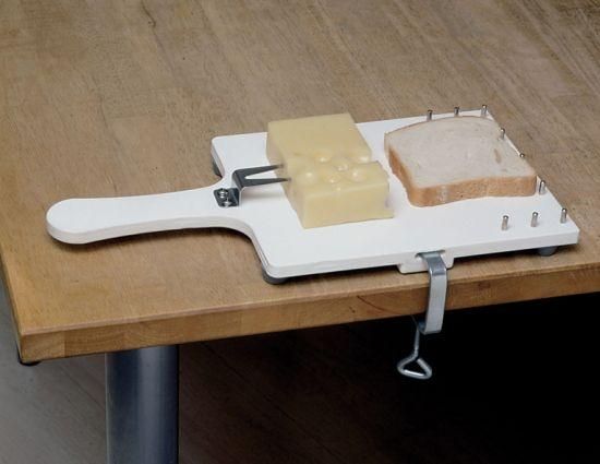 Idealnie urządzenie dla osób, które posiadają tylko jedną sprawną rękę. Dzięki tej uniwersalnej desce bez problemu osoby niepełnospranwe przygotują sobie posiłek - pokroją i posmarują. Deska posiada widelec zapobiegający przesuwaniu się krojonych rzeczy oraz metalowe kołki zapobiegające zsuwaniu się krojonego jedzenia. Deska wykonana jest z trwałego tworzywa sztucznego, ma antypoślizgowy spód i zacisk do mocowanai na kuchennym stole. Wymiary: 23cmx18cm