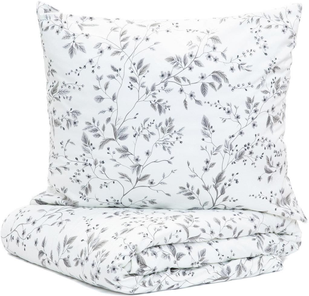 Pościel B2 Bilberry Branch Essentials z mikrofibry biała ze wzorem roślinnym 220x220 cm i 2 70x80 cm HOMLA Dobre Miasto