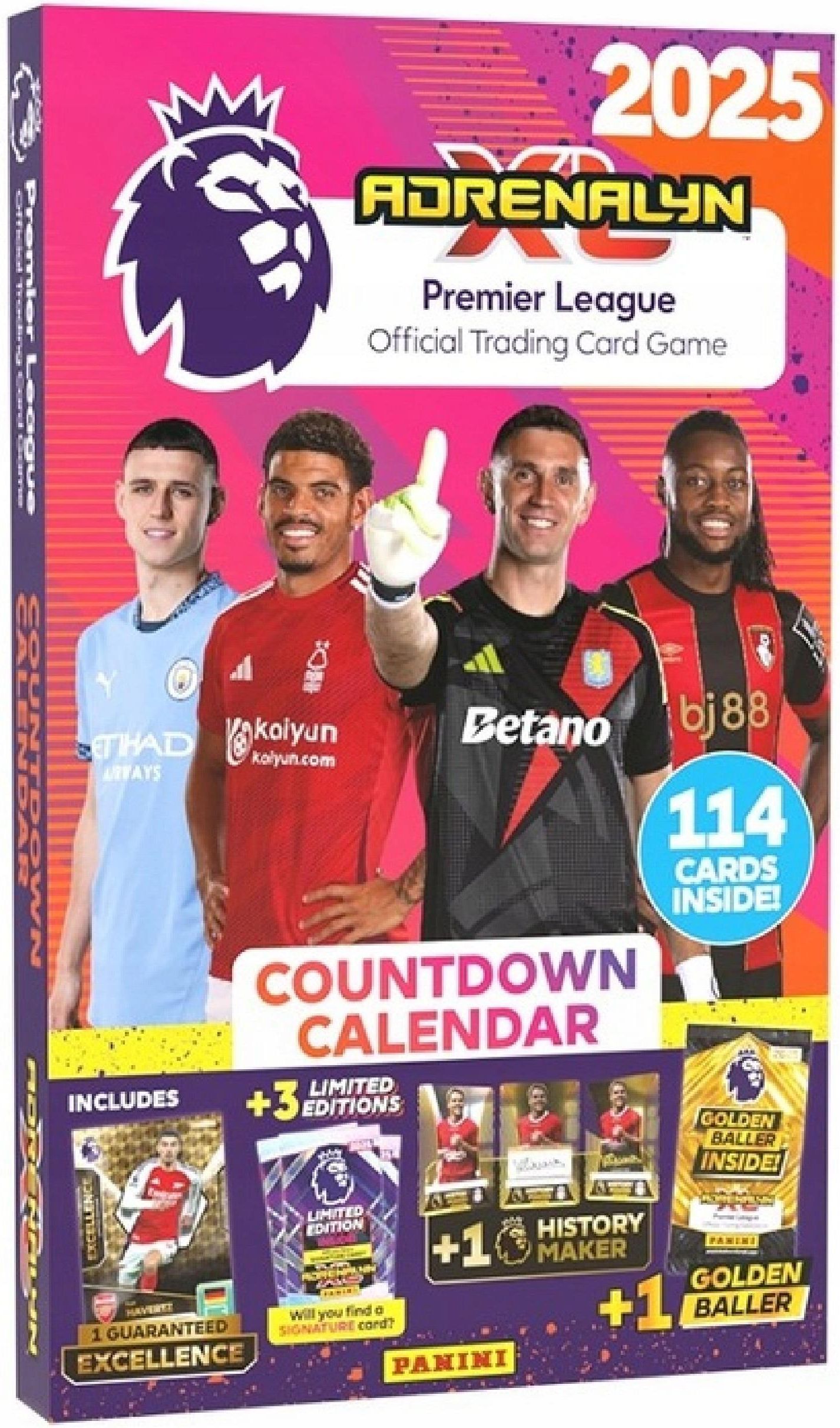WITAJ KOLEKCJONERZE ⚽ A MOŻE JESTEŚ RODZICEM MŁODEGO KOLEKCJONERA ;) Przedmiotem aukcji jest Kalendarz Adwentowy PANINI PREMIER LEAGUE 2025 z 24 okienkami KALENDARZ w kształcie książki o wymiarach 45x27 cm (otwarty kalendarz 45x54 cm) zawiera 24 okienka, a w każdym z nich ukryta jest NIESPODZIANKA - saszetka z kartami! KALENDARZ idealny na prezent! Pozycja obowiązkowa na ŚWIĘTA dla każdego kolekcjonera piłki nożnej :) Bardzo mały nakład! Gotowy? Otwórz swoją pierwszą saszetkę i rozpocznij przygodę! Adrenalyn XL™... pasja bez końca! UWAGA: KARTY PRZEDSTAWIONE W GALERII AUKCJI, TO KARTY PRZYKŁADOWE, KTÓRE MOŻNA TRAFIĆ W TEJ KOLEKCJI. KARTY W SASZETKACH SĄ UMIESZCZANE PRZEZ PRODUCENTA LOSOWO. ZESTAW ZAWIERA 18 Saszetek z kartami PREMIER LEAGUE 2025 Adrenalyn XL (każda saszetka zawiera 6 kart) 1 Gwarantowana karta EXCELLENCE Kai HAVERTZ Arsenal 1 Gwarantowana karta HISTORY MAKER Michael OWEN (przy odrobinie szczęścia można trafić tą kartę dodatkowo z autografem piłkarza) 1 Gwarantowana karta GOLDEN BALLER (karta losowa 1 z 8 dostępnych) 3 Gwarantowane karty LIMITED EDITION (karty losowe) CAŁY KALENDARZ ZAWIERA AŻ 114 KART DO UZUPEŁNIENIA KOLEKCJI PANINI PREMIER LEAGUE 2025 ADRENALYN XL! 1 Gwarantowana karta HISTORY MAKER Michael OWEN (przy odrobinie szczęścia można trafić tą kartę dodatkowo z autografem piłkarza) 1 Gwarantowana karta EXCELLENCE Kai HAVERTZ Arsenal 3 Gwarantowane karty LIMITED EDITION (karty losowe) 1 Gwarantowana karta GOLDEN BALLER (karta losowa 1 z 8 dostępnych)