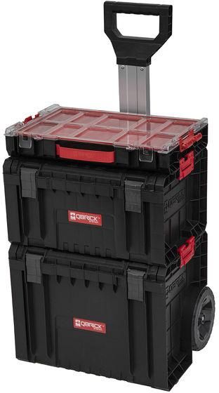 Mobilny warsztat QBRICK SYSTEM PRO SET 2 Najmniejszy na rynku, profesjonalny mobilny zestaw skrzynek modułowych do bezpiecznego przechowywania i wygodnego transportowania mniejszych narzędzi w trudnych warunkach budowlanych Mały organizer systemowy PRO ORGANIZER 100 – kompaktowa walizka z udaroodpornym przezroczem przytrzymującym wyjmowane kubełki o różnych rozmiarach Wszechstronna skrzynka PRO TOOLBOX – średniej wielkości, z przegrodami, tacką i możliwością wyposażenia w organizery umożliwia dowolne skonfigurowanie Mobilna skrzynia kołowa PRO CART – średniej wielkości kufer na kołach z wyjmowaną tacką to spora przestrzeń pakowa i solidne siedzisko Konektory boczne – innowacyjne zaczepy poliamidowe do bardzo trwałego łączenia ze sobą skrzynek z linii PRO o tym samym wymiarze pozwalają na transportowanie kilku skrzyń jednocześnie Zapięcia główne – bardzo łatwe w obsłudze poliamidowe zatrzaski można szybko obsługiwać jedną ręką Ekologiczne tworzywo typu PP – odporny na czynniki zewnętrzne kompozyt z recyklingu zapewnia nieprzeciętną wytrzymałość i stosowną elastyczność Elastyczne uszczelki pokryw – gumowy walec zlokalizowany w zagłębieniu stabilizującym zamknięte wieko, uniemożliwia dostanie się do wnętrza skrzynek pyłu i wilgoci, pozwalając na mycie ich pod ciśnieniem Kompatybilność z innymi elementami systemu Qbrick – możliwość łączenia ze skrzyniami ONE CART, VARIO i TECHNIK przez adaptery oraz z produktami PRO o najmniejszym rozstawie konektorów 450mm Wyposażenie podstawowe: Organizer PRO ORGANIZER 100 ORGQPRO100CZAPG001 Skrzynka PRO TOOLBOX SKRQTBPROCZAPG003 Skrzynka PRO CART SKRWQCARTPROCZAPG003 Opakowanie: 5-warstwowy karton Dane techniczne:a) Organizer z wyjmowanymi kubełkami System PRO ORGANIZER 100 Wymiary zewnętrzne (długość x szerokość x wysokość): 450x293x80mm Wymiary wewnętrzne (długość x szerokość x wysokość): 403x245x47mm Przybliżona pojemność organizera: 5l Ilość wyjmowanych kubełków z przegrodą: 2szt. Wymiary zewnętrzne (długość x szerokość x wysokość): 122x71x52mm Wymiary wewnętrzne 2x(długość x szerokość x wysokość): 52x60x46mm Ilość wyjmowanych kubełków bez przegrody: 2szt. Wymiary zewnętrzne (długość x szerokość x wysokość): 122x71x52mm Wymiary wewnętrzne (długość x szerokość x wysokość): 112x60x46mm Ilość wyjmowanych kubełków podłużnych: 2szt. Wymiary zewnętrzne (długość x szerokość x wysokość): 245x71x52mm Wymiary wewnętrzne (długość x szerokość x wysokość): 235x60x46mm Ilość wyjmowanych kubełków "kwadratowych": 2szt. Wymiary zewnętrzne (długość x szerokość x wysokość): 122x110x52mm Wymiary wewnętrzne (długość x szerokość x wysokość): 110x100x46mm Szerokość rękojeści: 135mm Linia: PRO (nie pasuje do PRO 600 i 700) b) Skrzynka narzędziowa Qbrick System PRO Toolbox Wymiary zewnętrzne (długość x szerokość x wysokość): 450x322x240mm Wymiary wewnętrzne (długość x szerokość x wysokość): 358x245x189mm Maksymalna przekątna: 480mm Pojemność: 19l Udźwig: 20kg Linia: PRO (nie pasuje do PRO 600 i 700) Pokrywa: rękojeść składana Wnętrzne: tacka narzędziowa, 3 wyjmowane przegrody, kompatybilność z 5 organizerami QS TWO MULTI c) Kołowa skrzynka narzędziowa Qbrick System PRO Cart Wymiary zewnętrzne (długość x szerokość x wysokość): 450x390x690mm Wymiary wewnętrzne (długość x szerokość x wysokość): 308x210x296mm Maksymalna przekątna: 500mm Pojemność: 28l Udźwig: 35kg Linia: PRO (nie pasuje do PRO 600 i 700) Pokrywa: rękojeść składana Wnętrzne: tacka narzędziowa Średnica stalowej osi kół: 12mm Średnica dużych kół: 180mm Rozstaw dużych kół: 450mm Wysokość rękojeści teleskopowej: 700-1000mm Opakowanie: 3-warstwowy karton