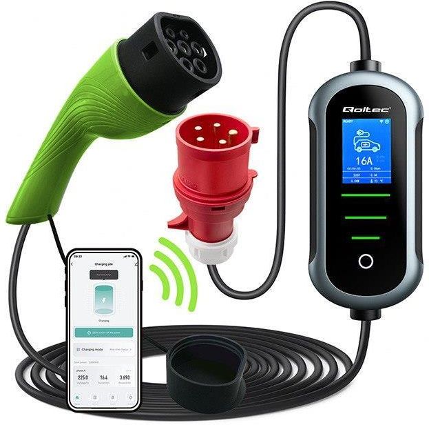 Najlepsze rozwiązanie do ładowania pojazdów elektrycznych Szybkie ładowanie, Uniwersalne podłączenie, Idealna dla długich wyjazdów Nie pozwól, aby niski poziom naładowania akumulatora ograniczał Twoją mobilność. Mobilna ładowarka samochodu elektrycznego Qoltec to praktyczne i niezawodne rozwiązanie, które umożliwia szybkie ładowanie auta elektrycznego z gniazda siłowego CEE 32A. Kompaktowa konstrukcja i solidne wykonanie sprawiają, że urządzenie jest idealne do użytku domowego i w podróży. Wystarczy dostęp do gniazda siłowego 400V, aby bezpiecznie i szybko naładować samochód elektryczny. Ładowarka doskonale sprawdza się podczas wyjazdów służbowych i wakacyjnych, a dzięki dołączonej torbie transportowej możesz przechowywać ją wygodnie w bagażniku. Europejski standard złącza typu 2 Wysoka moc ładowania, 7-stykowe złącze typu 2 zgodne z obowiązującymi przepisami, Cztery opcje (8A, 10A, 13A, 16A) dla optymalnego ładowania Ładowarka Qoltec EV Typ 2 spełnia europejskie normy i jest kompatybilna z większością samochodów elektrycznych dostępnych w Europie. Złącze typu 2 to obecnie oficjalny standard UE, wyposażony w 7 styków - z czego 3 lub 5 odpowiadają za przepływ energii, a 2 za komunikację między ładowarką a pojazdem. Urządzenie obsługuje cztery tryby natężenia prądu: 8A, 10A, 13A i 16A, dzięki czemu możesz dobrać optymalne ustawienia ładowania do swojego samochodu i warunków zasilania. Złącze typu 2 przeznaczone jest do pojazdów o mocy ładowania powyżej 3 kW, co gwarantuje szybkie, efektywne i bezpieczne uzupełnianie energii w akumulatorze. Wielofunkcyjny wyświetlacz LCD Wygodny wyświetlacz LCD 2,4", Monitorowanie dokładnego czasu ładowania, Czujnik temperatury zapewniający bezpieczną pracę ładowarki, Automatyczna naprawa błędów Produkt wyposażony w wielofunkcyjny, wyświetlacz LCD 2,4" i diody LED informujące o stanie ładowania.Na wyświetlaczu możemy : - ustawić wartość natężenia prądu za pomocą przycisku A : 8A, 10A, 13A, 16A; - sprawdzić dokładny czas ładowania, - ustawić opóźnienie czasu ładowania wystarczy użyć przycisku z ikonką zegara, - monitorować temperaturę pracy ładowarki w czasie rzeczywistym dzięki wbudowanemu czujnikowi temperatury wtyczki, ładowarka natychmiast przerwie pracę, jeśli zostanie przekroczona bezpieczna wartość i automatycznie wznowi pracę po powrocie temperatury do normalnego poziomu, - monitorować postępy procesu ładowania, Automatyczna naprawa błędów Dodatkowo wbudowany inteligentny chip dba o stabilność działania i automatycznie koryguje ewentualne błędy, zapewniając bezpieczne ładowanie Twojego samochodu elektrycznego w każdych warunkach. Pełna kontrola nad procesem ładowania Twojego pojazdu elektrycznego Monitoruj i Zarządzaj Ładowaniem za Pomocą Smartfona Zyskaj pełną kontrolę nad ładowaniem swojego samochodu elektrycznego dzięki funkcji WiFi i dedykowanej aplikacji mobilnej. Po sparowaniu telefonu z ładowarką możesz monitorować przebieg ładowania w czasie rzeczywistym, sprawdzać parametry pracy oraz zdalnie dostosowywać ustawienia, takie jak prąd, czas lub plan ładowania.Z aplikacji możesz także zaplanować sesje ładowania w dogodnych godzinach, aby maksymalnie wykorzystać tanią energię i zoptymalizować zużycie prądu. Funkcja opóźnionego ładowania Intuicyjna obsługa, Inteligentna funkcja opóźnienia ładowania o 2, 4, 6 lub 8 godzin Funkcja opóźnionego startu ładowania pozwala Ci zaplanować rozpoczęcie pracy urządzenia o wybranej godzinie - na przykład o 2, 4, 6 lub 8 godzin później. To rozwiązanie idealne dla osób, które chcą korzystać z tańszej, nocnej taryfy energii lub zmniejszyć obciążenie sieci elektrycznej w godzinach szczytu. Ładuj w domu lub w podróży 5-metrowy kabel ładowania i ergonomiczna wtyczka Mobilna ładowarka EV Qoltec to idealne rozwiązanie zarówno do użytku domowego, jak i w podróży. Można ją zamontować na ścianie w garażu lub na zewnątrz — wystarczy wybrać miejsce blisko pojazdu i źródła zasilania 400V wyposażonego we wtyczkę siłową CEE 32A. Dodatkowym atutem jest 5-metrowy kabel ładowania zakończony ergonomiczną wtyczką typu 2, która zapewnia wygodę użytkowania i swobodę podłączenia pojazdu. Dla pełnego bezpieczeństwa zaleca się zastosowanie wyłącznika różnicowoprądowego typu B, który skutecznie chroni przed porażeniem prądem i przeciążeniem instalacji. Wodoodporna obudowa z poliwęglanu Trwała i Odporna na Warunki Atmosferyczne obudowa wykonana z niepalnego poliwęglanu, Łatwy zewnętrzny montaż, Odporność na wodę i pył Konstrukcja ładowarki została wykonana z wysokiej jakości poliwęglanu - materiału niepalnego, odpornego na promieniowanie UV, wodę i kurz. Dzięki klasie szczelności IP65 urządzenie jest w pełni odporne na deszcz, wilgoć i zapylenie, co czyni je idealnym wyborem do montażu zewnętrznego. Postaw na ekologię i zasilaj swój samochód czystą energią Wykorzystaj własną energię słoneczną do ładowania samochodu, Doładuj swój pojazd nawet kilka razy szybciej Wybierając ładowarkę Qoltec EV, stawiasz na ekologiczne i ekonomiczne rozwiązanie. Dzięki integracji z instalacją fotowoltaiczną możesz ładować swój samochód energią odnawialną, ograniczając tym samym koszty eksploatacji i emisję dwutlenku węgla. To nie tylko korzyść dla środowiska, ale i realne oszczędności w domowym budżecie. Zasilanie samochodu czystą energią słoneczną pozwala na uzupełnienie baterii nawet kilka razy szybciej, w zależności od mocy paneli, pojemności akumulatora oraz pokonywanych dystansów. Możesz ładować pojazd na dwa sposoby: • bezpośrednio w czasie produkcji energii z paneli fotowoltaicznych - to najbardziej efektywny i opłacalny wariant, • z wykorzystaniem nadwyżki energii zgromadzonej w magazynie energii lub oddanej do sieci, co umożliwia 