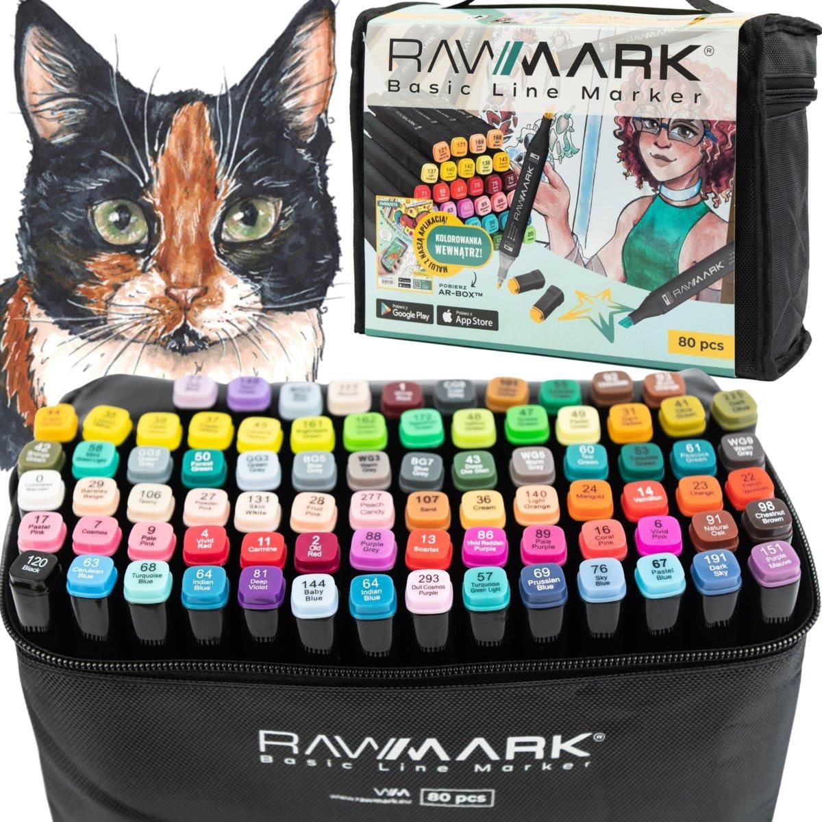 Rawmark Rawmark, Markery Alkoholowe Basic, 80 Kolorów + Kolorowanka Połączona Z Aplikacją 10 Kartek Dobre Miasto