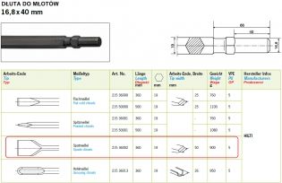 Dłuto szerokie 360x19mm 50mm 16,8x40mm
