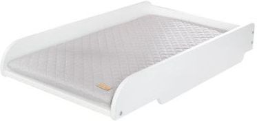 Nakładka do przewijania roba zajmuje niewiele miejsca i dlatego jest idealnym rozwiązaniem dla świadomych trendów rodziców, którzy dysponują ograniczoną przestrzenią w domu. Poprzez proste umieszczenie go na łóżeczkach o wymiarach 60x120 cm i 70x140 cm, uzyskuje się powierzchnię do przewijania bezpośrednio przy łóżku dziecka. Miękka wyściółka jest dołączona do zestawu, aby Twoje dziecko mogło wygodnie leżeć. Powierzchnia maty do przewijania z pikowanej mikrofibry jest odporna na wodę i zabrudzenia oraz wyjątkowo przyjazna dla skóry i przytulna. Wszystkie materiały użyte do produkcji maty do przewijania bez ftalanów są sprawdzone pod kątem zawartości substancji szkodliwych, certyfikowane i regularnie testowane. Powierzchnia podkładki na stół do przewijania jest łatwa do wytarcia i czyszczenia. Blat przewijaka ma nośność do 15 kg. Szczegóły produktu: Kolor: biały Materiał: płyta wiórowa, pokryta melaminą Powierzchnia: szerokość x głębokość 46 x 80 cm Wymiary: szerokość x głębokość x wysokość 49 x 82 x 14 cm Łatwe do umieszczenia na łóżeczkach 60 x 120 cm / 70 x 140 cm 3 krawędzie bezpieczeństwa Mata do przewijania wykonana z folii bez ftalanów Materiał maty do przewijania: 100% poliester, wypełnienie: włóknina poliestrowa Możliwość obciążenia do 15 kg W zestawie: Nakładka do przewijania Mata do przewijania