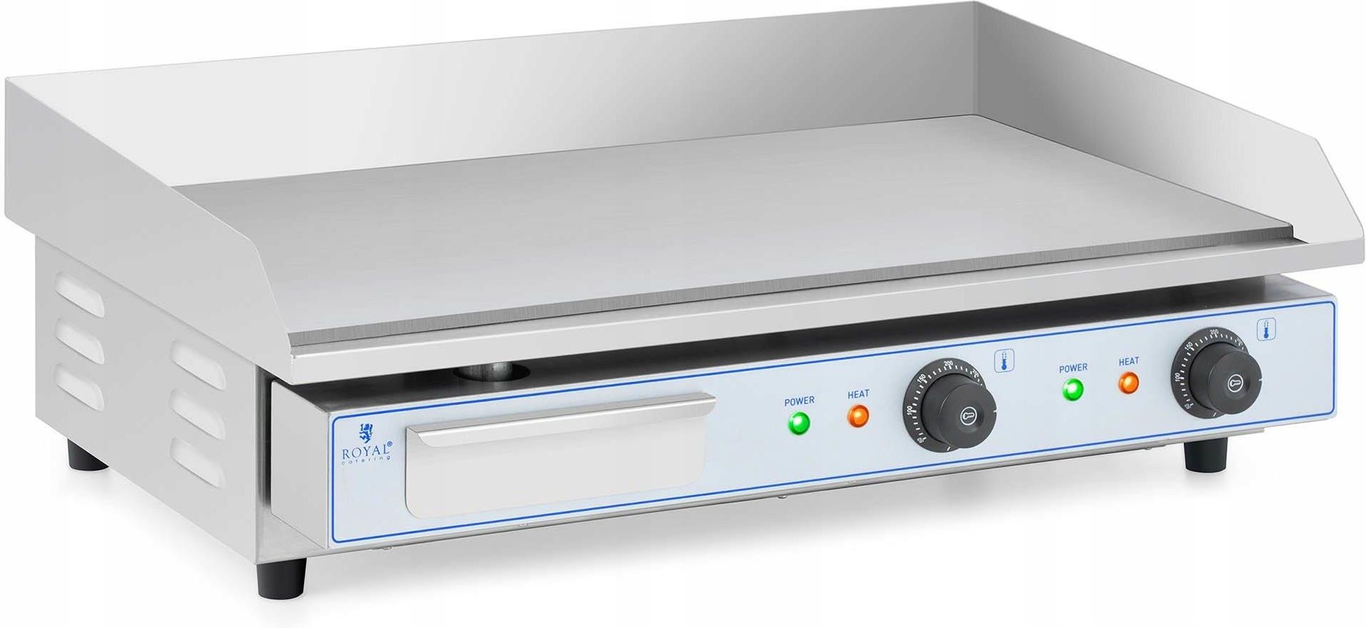 Grill płyta grillowa elektryczna podwójna gładka 730 x 400 mm 2 x 2200 W Royal Catering Kod producenta: 10012369 Płyta grillowa marki Royal Catering pozwala przyrządzać specjały z grilla przez cały rok. Sprawdzi się do soczystych steków, hamburgerów, ryb, omletów, tortilli czy warzyw. Urządzenie zapobiega wydzielaniu dymu oraz zapewnia higieniczny i bardzo czysty sposób pracy. W pełni automatyczny termostat zapewnia utrzymanie stałej temperatury. Wydajne elementy grzewcze pracują z mocą 2 x 2200 W, co pozwala szybko osiągnąć temperaturę roboczą w zakresie 50-300°C, regulowaną pokrętłami. Wydajna stalowa płyta grillowa szybko przenosi ciepło z elementów grzewczych na żywność i jednocześnie je utrzymuje. Płyta o grubości 10 mm ma wymiary 730 x 400 mm. Dzięki gładkiej powierzchni jest łatwa w utrzymaniu czystości i bardzo higieniczna. Płyta posiada osłonę przeciwbryzgową, która chroni ściany i otoczenie przed pryskającym tłuszczem. Obudowa urządzenia wykonana została z wysokiej jakości stali nierdzewnej, dzięki czemu jest szczególnie odporna na korozję i neutralna w kontakcie z żywnością. Płyta grillowa posiada szufladę na tłuszcz. Tackę ociekową można łatwo wyjąć i wyczyścić. Stabilność urządzenia gwarantują antypoślizgowe nóżki, które nie rysują powierzchni roboczej. Cechy produktu - Gładka powierzchnia sprawia, że idealnie nadaje się do różnorodnych dań w restauracjach, barach z przekąskami i mobilnej gastronomii, - Moc 2 x 2,200 W i zakres temperatury 50-300°C, - Doskonale usmażone jedzenie dzięki w pełni automatycznemu sterowaniu termostatem, - Osłona przeciwbryzgowa i pojemnik na tłuszcz oraz olej dla czystej i wygodnej pracy, - Dzięki wysokiej jakości wykonania, obudowie wykonanej ze stali nierdzewnej oraz stalowej płycie grzewczej. Parametry techniczne - Nr katalogowy - 10012369 - Stan artykułu - Nowy - Model - RC-EG001 - Powierzchnia grzewcza - Gładka - Kolor - Srebrny - Napięcie [V] - 230 - Moc [W] - 2 x 2200 - Moc maksymalna [W] - 4400 - Wymiary płyty grzewczej [mm] - 730 x 400 - Grubość płyty grillowej - 10 mm - Wymiary (DxSxW) - 73 x 47.5 x 25 cm - Waga - 32.3 kg - Wymiary wysyłki (DxSxW) - 85 x 59 x 34 cm - Waga wysyłki - 36.7 kg W zestawie - Płyta grillowa - Instrukcja obsługo Kod producenta: 1026199 Grupa asortymentowa: Grille Marka: Royal Catering Koszty dostawy: 19,9 Czas wysyłki: Standardowo 1 dzień roboczy. Zamówienia złożone przed 8:00 najczęściej wysyłane są tego samego dnia. Zamówienia między 8:00 a 10:00 – wysyłka tego samego lub następnego dnia, zależnie od produktu i dnia tygodnia. Zamówienia po 10:00 – najczęściej następnego dnia roboczego. Czas dostawy (szacowany): 1 dzień roboczy od wysyłki Metody dostawy: Kurier Klasa przesyłki: Standard Oznaczenie wewn.: GC4 DST (ozn. wewn.): EX Producent odpowiedzialny: expondo GmbH, Dessauer Str. 28-29, 10963, Berlin, DE Osoby odpowiedzialne: expondo GmbH, Dessauer Str. 28-29, 10963, Berlin, DE EAN: 4062859049483 Gwarancja producenta: 2 lata