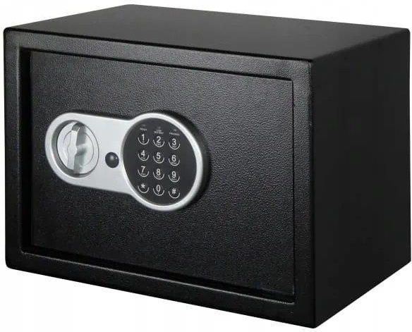 Sejf domowy z zamkiem elektronicznym TSF-13 na pieniądze, dokumenty, nośniki danych, biżuterię, leki, kosztowności Zalety: Wysokiej jakości sejf kasa pancerna odporny na uszkodzenia i próby zniszczenia. Wykonany z wysokiej jakości stali malowanej proszkowo. Sejf elektroniczny zaprojektowany z myślą o przechowywaniu najważniejszych i najbardziej wartościowych przedmiotów. Szerokość sejfu to aż 35 cm. Jest duży i pojemny. Doskonale sprawdzi się w przechowywaniu małych, jak i większych przedmiotów np. aparat, leki, biżuteria, pieniądze, segregator A4 z dokumentami. Do zastosowania w biurze, mieszkaniu czy pensjonacie. Sejf otwierany przy pomocy dowolnie zaprogramowanego kodu ustawionego w ciągu cyfr od 3 do 8. Posiada system automatycznej blokady po trzykrotnym błędnie wprowadzonym kodzie. W takim wypadku należy użyć klucza bezpieczeństwa (w zestawie klucze). Dzięki otworom mocującym znajdującym się w podłodze i ściance tylnej może być mocowany do stabilnego podłoża lub ściany za pomocą solidnych kołków (4 sztuki dołączone w zestawie). Zasilanie bateriami AA (niedostępne w komplecie). Urządzenie samo zgłosi moment rozładowania baterii poprzez miganie diody. Dno sejfu wyścielone miękkim suknem. Ciekawy pomysł na prezent. Dane techniczne: Rozmiar zewnętrzny: 350 mm x 250 mm x 250 mm Rozmiar wewnętrzny: 345 mm x 246 mm x 230 mm Waga: 6,5 kg W zestawie: Sejf z solidnym elektronicznym zamkiem 2 klucze bezpieczeństwa 4 kotwy mocujące instrukcja obsługi w języku polskim wyściółka filcowa Sejf wyposażony w wygodną półkę, która pomoże utrzymać porządek w środku. Produkt jest nowy, nieużywany w oryginalnym opakowaniu fabrycznym. Produkty najwyższej jakości zawsze od Total Shopping