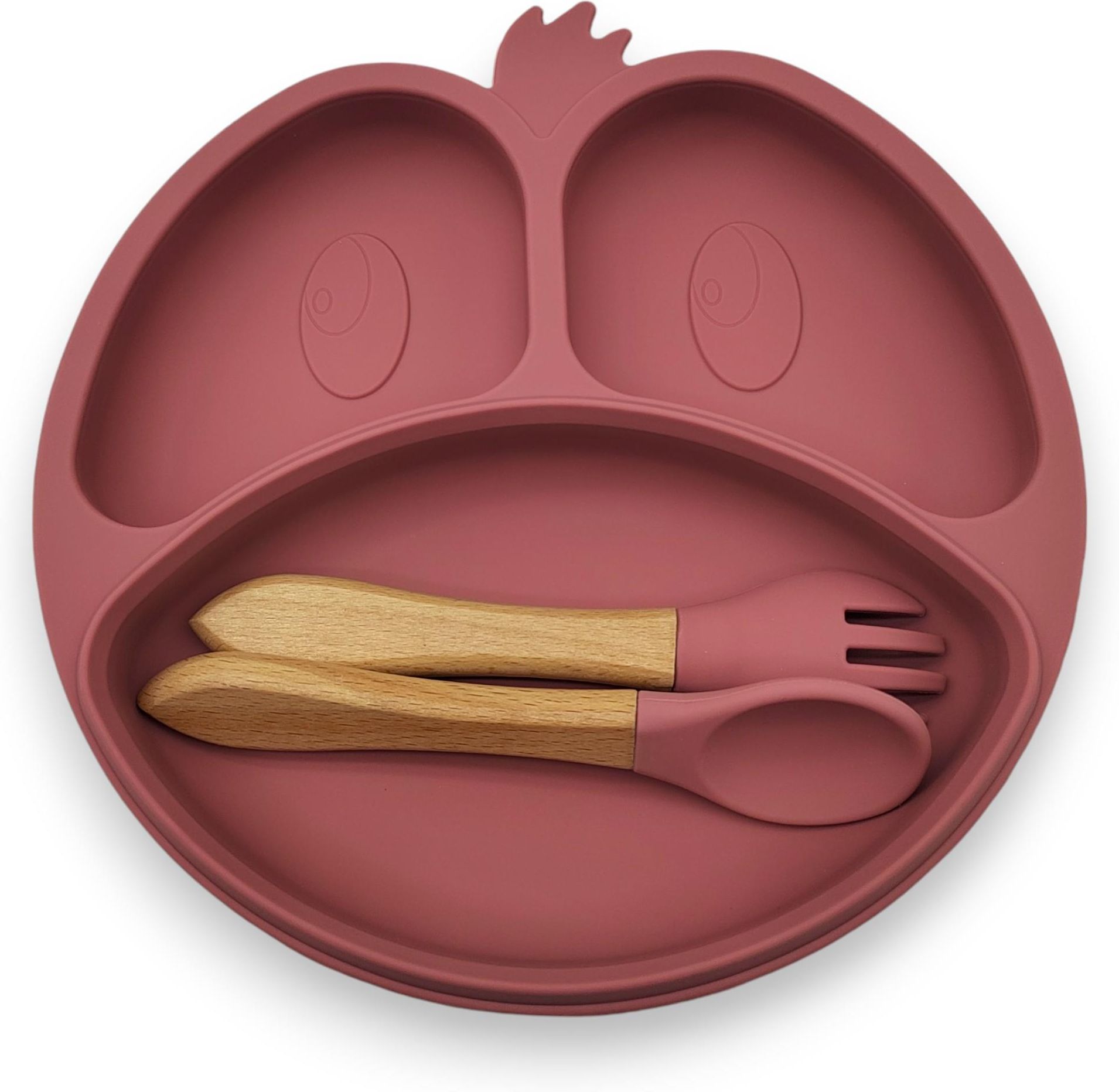 Silikonowy zestaw do karmienia niemowląt Talerzyk Przysawka talerz sztućce Dobre Miasto