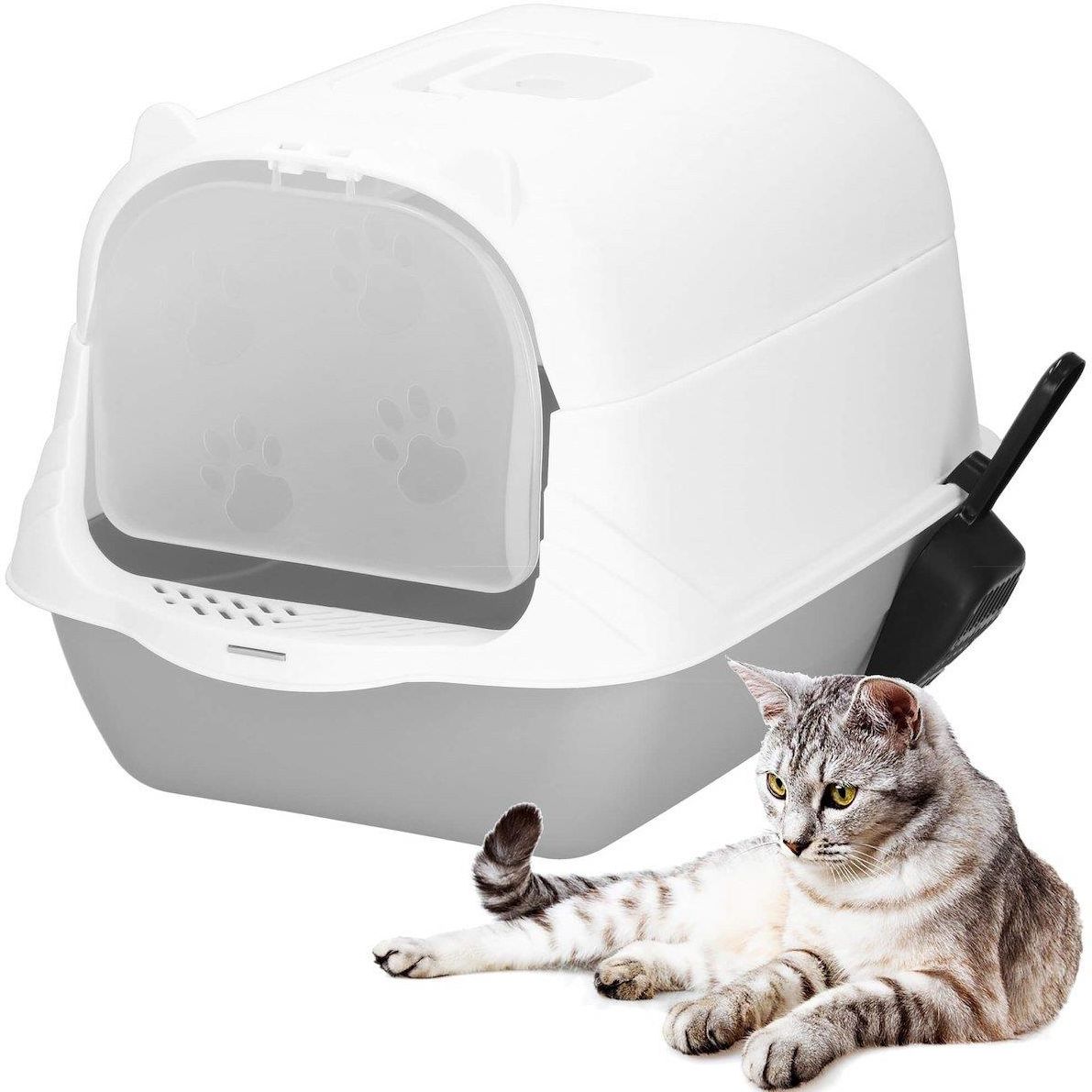 Springos Toaleta Dla Kota Kuweta Zamknięta Z Łopatką 49X36X35Cm Szaro-Biała Dobre Miasto