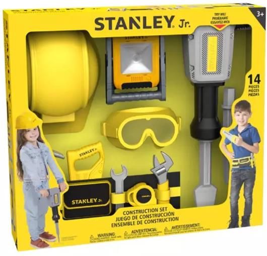 Zestaw na budowę Stanley Jr. to świetna propozycja dla dzieci, które marzą o wcieleniu się w rolę prawdziwych budowlańców. W zestawie znajduje się aż 14 elementów, dzięki którym mali konstruktorzy mogą tworzyć własne scenariusze zabawy, rozwijając przy tym wyobraźnię i zdolności manualne. W komplecie znalazły się m.in. kask ochronny, okulary, pas na narzędzia, latarka, klucze oraz młot pneumatyczny, które wiernie odwzorowują prawdziwe wyposażenie placu budowy. Dzięki takim dodatkom dzieci uczą się zasad bezpieczeństwa i poznają podstawy pracy z narzędziami w formie zabawy. Charakterystyczna żółto-czarna kolorystyka nadaje całości profesjonalnego wyglądu, a solidne wykonanie gwarantuje trwałość i bezpieczeństwo użytkowania. Zestaw jest przeznaczony dla dzieci od 3. roku życia i świetnie sprawdzi się zarówno w domu, jak i podczas wspólnej zabawy z rówieśnikami. To doskonała zabawka edukacyjna, która inspiruje do twórczej zabawy, wspiera koordynację ruchową i rozwija zainteresowanie techniką oraz światem budownictwa.