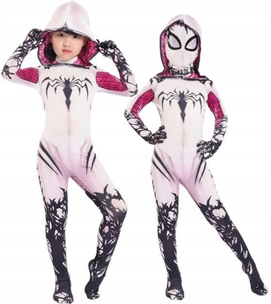STRÓJ PRZEBRANIE SPIDER VENOM GWEN STACY BIAŁO CZARNO RÓŻOWY OFERTA DOTYCZY ROZMIARU 134/140 z metki l STRÓJ SPIDER VENOM GWEN STACY Opis produktu: Fantastyczny strój odzwierciedlający postać Spider venom Gwen Stacy, Kostium w postaci jednoczęściowego kombinezonu (długie spodnie, długi rękaw), …
