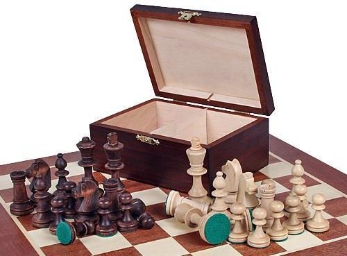 Oferujemy jakościowe drewniane figury szachowe Staunton nr 4 oferowane jako komplet wraz z estetycznym drewnianym kuferkiem do przechowywania figur. Wnętrze kuferka ma wydzielone dwie komory - na białe i czarne figury. Figury Staunton nr 4 z Królem o wysokości 80 mm doskonale nadają się do deski …