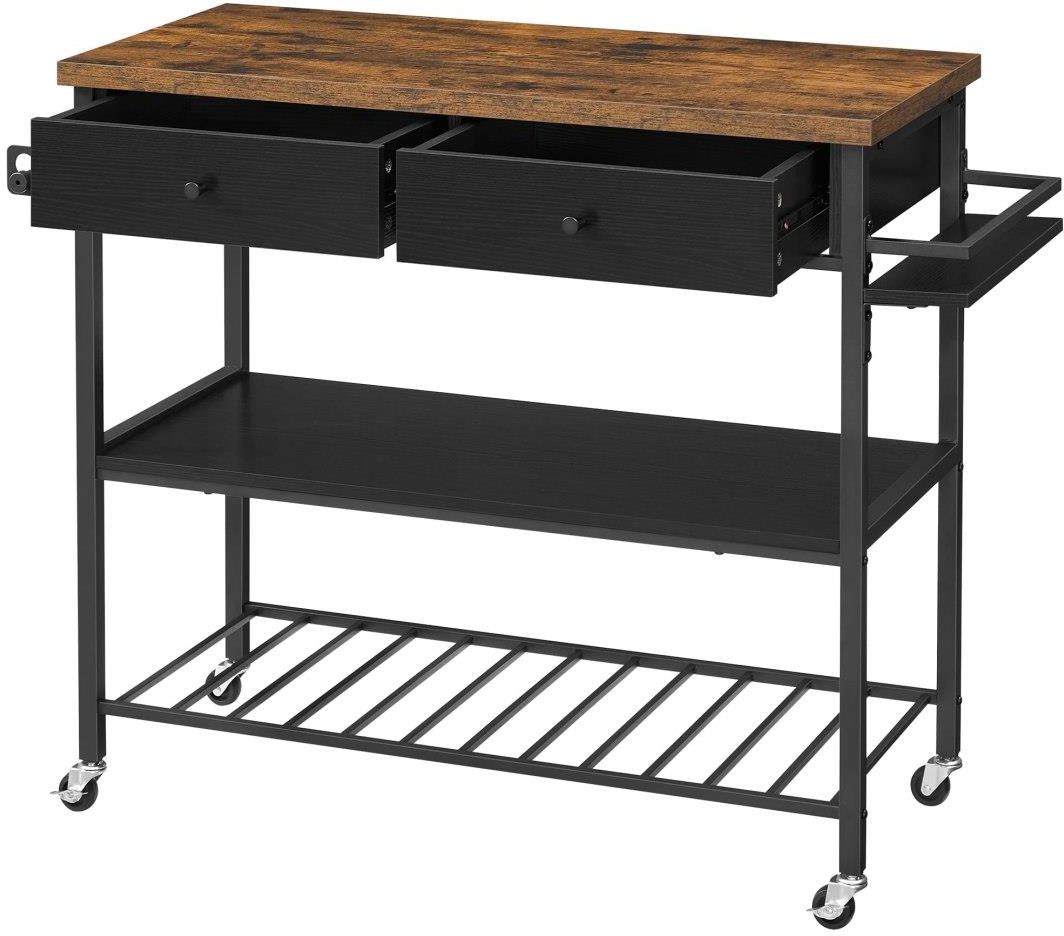 " Opis produktu marki OSKAR WYSPA KUCHENNA, REGAŁ, RUSTYKALNY BRĄZ, W STYLU LOFT Wyspa wykonana w stylu rustykalnym, czyli odpowiednio stylizowanym na wiekowy. Półki wyspy są stabilne, a więc możemy umieścić na nich urządzenia elektryczne jak kuchenka mikrofalowa, ekspres do kawy, naczynia, produkty spożywcze, przyprawy i wiele innych. Regał cechuje się uniwersalnością oraz funkcjonalnością, będzie świetnie pasował do kuchni, a półki ułatwią nam dostęp do ulubionych rzeczy. Meble w stylu loft to ostatni krzyk mody. Stolik na pewno wpasuje się w wystrój niejednego pomieszczenia. Duży blat, 2 szuflady i 2 półki na dole na przybory kuchenne różnej wielkości, wieszak na ręczniki po lewej stronie i pojemnik na przyprawy po prawej. Ta wyspa kuchenna ma wszystkie rozwiązania do przechowywania, których potrzebujesz. Stalowa konstrukcja zapewnia stabilność mebla. Idealnie spasowane elementy ramy oraz rustykalna oprawa półek nadadzą Twojemu wnętrzu wdzięku. Zadbaj o estetykę swojej kuchni wybierając produkty sprawdzone, o najwyższej jakości wykonania. SPECYFIKACJA Kolor: rustykalny brąz, matowa czerń Materiał: płyta wiórowa, stal Wymiary: 119 x 45 x 91 cm (szerokość x głębokość x wysokość) Odległość między półkami: od 27 do 30 cm Waga: 24,5 kg Max. obciążenie na półkę: 25 kg Max. obciążenie środkowej półki: 15 kg Max. obciążenie dolnej półki: 15 kg Produkt do samodzielnego montażu Kółka pozwalają na łatwe przemieszczanie wyspy. Zorganizuj swoją przestrzeń do gotowania razem z prezentowanym regałem. Dane logistyczne 1 x SKU 2356 waga 27,5 kg brutto - wymiary 114 x 50,5 x 18 cm. "