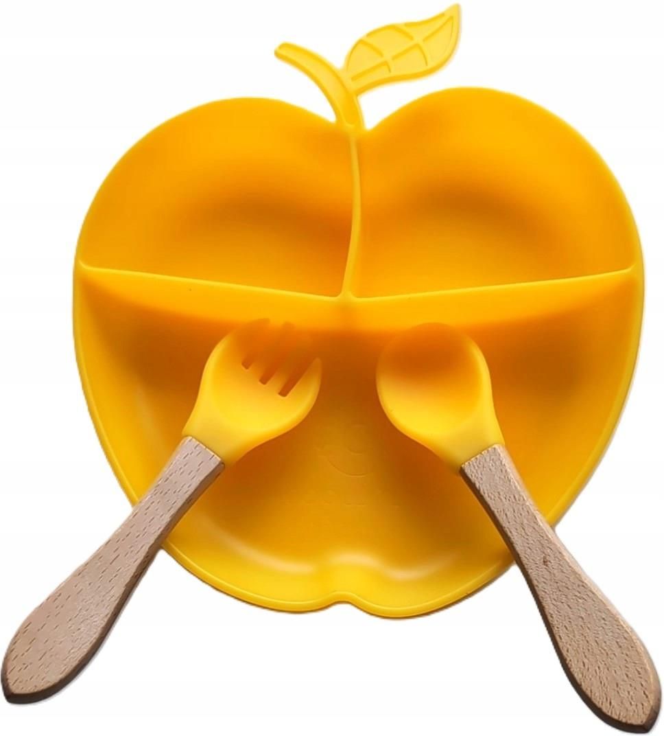 ?Szukasz idealnego zestawu na początek przygody z samodzielnym jedzeniem? Właśnie znalazłeś! Nasz talerz silikonowy w pięknym kształcie jabłuszka na pewno zaciekawi Maluszka zachęcając do jedzenia a trzy silne przyssawki na spodzie talerzyka zapewnią stabilność, minimalizując ryzyko przewrócenia lub przesunięcia talerzyka przez dziecko :) Oto kilka kluczowych cech takiego talerzyka Materiał: Wykonany z bezpiecznego dla zdrowia silikonu spożywczego, który jest wolny od BPA, PVC i ftalanów. Drewniane sztućce z silikonową końcówką, zostały wyprofilowane z myślą o najmłodszych, posiadają miękkie i zaokrąglone końcówki które są bezpieczne dla delikatnej buzi dzieciątka. Trzy przegródki, które umożliwiają podzielenie jedzenia na różne sekcje, co pomaga w serwowaniu zróżnicowanych posiłków Łatwość czyszczenia: Silikonowy talerzyk jest łatwy do mycia, można go myć w zmywarce, a także jest odporny na wysokie temperatury Ergonomiczny kształt: Zaprojektowany tak, aby ułatwić dziecku samodzielne jedzenie, co wspiera rozwój umiejętności motorycznych. Wymiary talerzyka to: 17x15x3 cm ?Mamy w ofercie talerzyki w kolorach brązowym niebieskim zielonym Sprawdź w naszym sklepie! ?Zapraszamy na nasze pozostałe aukcje! Znajdziesz inne naczynia silikonowe w podobnej kolorystyce: Talerzyki silikonowe w zestawie ze sztućcami Miseczki silikonowe w zestawie ze sztućcami Śliniaki silikonowe - mięciutkie dopasowujące się do Maluszka?? Taki zestaw może być pięknym prezentem! ?Ważne: talerzyk jest bezpieczny! Został przebadany pod kątem kontaktu z żywnością i uzyskał Świadectwo Sanepidu. ?Produkty #cool_items to jakość, o którą dbamy! Zapewniamy Państwu obsługę posprzedażową. Jeżeli mają Państwo pytania odnośnie naszych produktów nasz wykwalifikowany zespół z przyjemnością udzieli Państwu pomocy. Jako firma z długoletnim doświadczeniem dbamy o jakość naszych produktów. 100 % zadowolonych klientów zobowiązuje! Produkt wysyłamy zapakowany w woreczek foliowy oraz indywidualny kartonik. Dzięki czemu nadaje się również na prezent. Paczkę wyślemy z naszego magazynu w Polsce, zatem dotrze do Ciebie szybko!