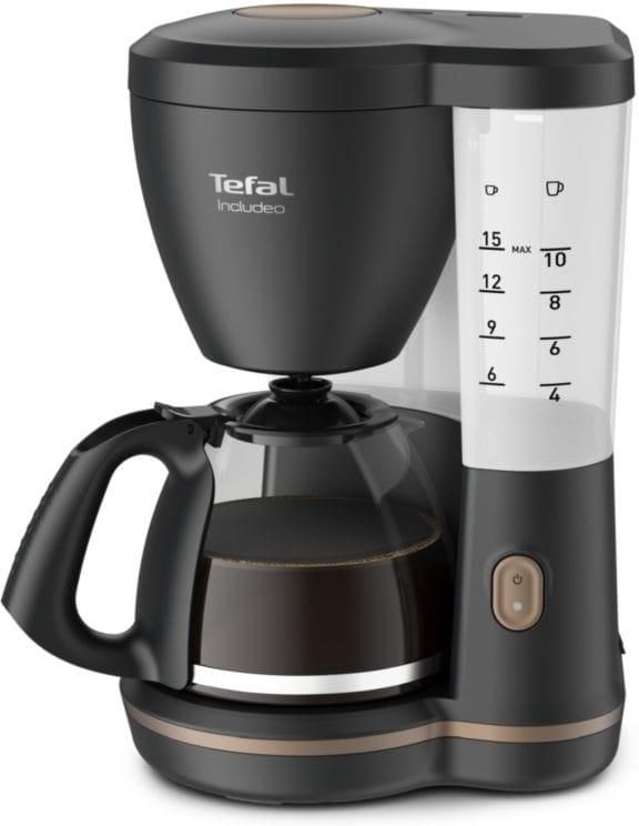 Ekspres przelewowy Tefal Includeo CM533811 Ekspres Includeo Zaprojektowany dla Ciebie, stworzony dla każdego Ekspres TEFAL CM533811 to tradycyjny ekspres przelewowy. Jesteś sam i nie chcesz niepotrzebnie marnować kawy? Możesz zaparzyć swoja ulubiona kawę w dowolnej chwili. Twoi przyjaciele przychodzą na lunch? Nie martw się, w dzbanku możesz przygotować do 1,25 l kawy dla wszystkich swoich gości. Twój ekspres do kawy jest teraz dostosowany do Twoich potrzeb. Jego łatwe w obsłudze menu pozwala na przygotowanie świeżej kawy w żądanej ilości na wyciągnięcie ręki. Specjalna funkcja uproszcza otwieranie dużym przyciskiem a wyjmowany uchwyt filtra jest łatwy do wyjęcia i czyszczenia. Duży zbiornik na wodę z dużymi, czytelnymi wskaźnikami, stabilna szeroka podstawa czyni ten ekspres idealnym do przyjemnego codziennego użytku. Główne cechy: Moc 1000W Włącznik/wyłącznik Automatyczne wyłączanie Otwieranie dużym przyciskiem, Wyjmowany uchwyt filtra łatwy do wyjęcia i czyszczenia Duży zbiornik na wodę z dużymi, czytelnymi wskaźnikami Stabilna szeroka podstawa Utrzymywanie ciepła Widoczny poziom wody Zdejmowany zbiornik Pojemność użytkowa 1,25l Dzbanek ze szkła System zapobiegający kapaniu