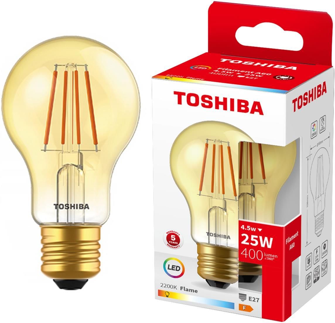 Toshiba Żarówka LED filament E27 A60 4,5W bursztyn 00172719 Dobre Miasto