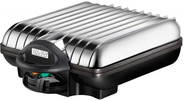 Gofrownica Unold 48266 nr kat. 1188812 Moc: 1200 W Ilość i kształt gofrów: 4 kwadraty Regulowanie temperatury: tak Powłoka zapobiegająca przywieraniu: tak Nr kat. 1188812 Ciesz się smakiem domowych gofrów zawsze wtedy, gdy masz na to ochotę Gofry to idealna przekąska dla małych i dużych. Mogą być posypane cukrem pudrem, polane polewą lub z dużą ilością bitej śmietany i owoców. Te urządzenie pomoże Ci przygotować smaczne gofry w Twojej własnej kuchni. Postaw na dużą moc urządzenia i szybciej przyrządzaj swoje potrawy Dzięki dużej mocy urządzenie rozgrzewa się szybko i jest gotowe do pracy niedługo po uruchomieniu. Gwarantuje to szybsze przygotowanie smakołyków. Postaw na płytki z powłoką nieprzywierającą Martwisz się, że ciasto będzie przywierać do urządzenia? Aby temu zapobiec wybierz model z płytami pokrytymi powłoką nieprzywierającą, które ułatwią smażenie przysmaków. Decyduj o stopniu przyrumienienia dzięki regulacji temperatury Model ten umożliwia regulację temperatury. Możesz to wykorzystać do przygotowania mniej lub bardziej przyrumienionych smakołyków. Zdjęcia SPECYFIKACJA Ilość i kształt gofrów: 4 kwadraty Moc: 1200 W Regulowanie temperatury: tak Powłoka zapobiegająca przywieraniu: tak Barwa: srebrno-czarny Parametry zewnętrzne Wymiary opakowania: 26 x 12 x 33 cm Waga z opakowaniem: 2,80 kg