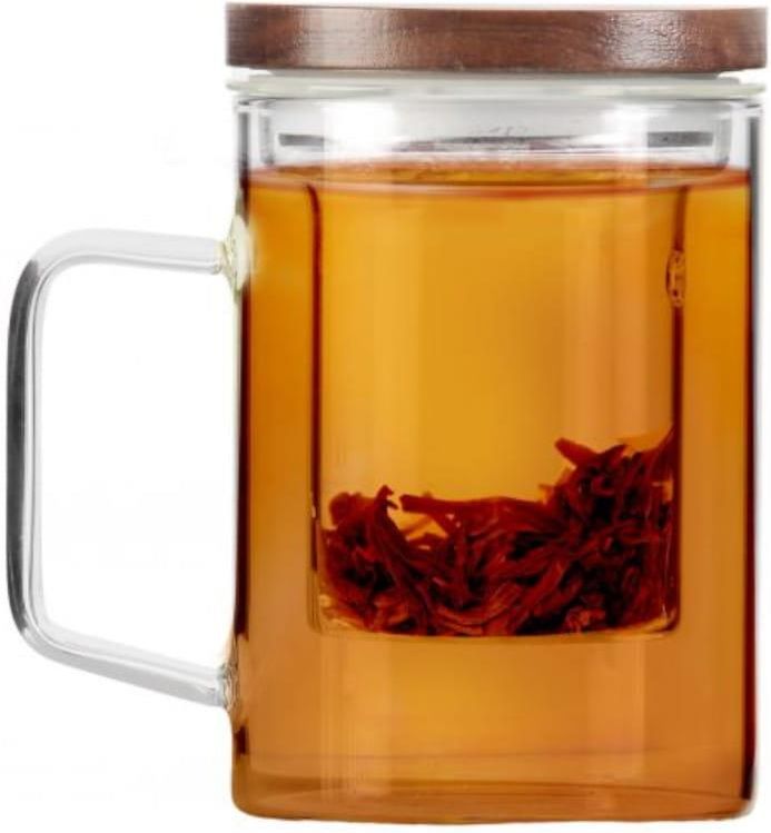 PIĘKNIE PODANE, DŁUŻEJ ZACHOWANA TEMPERATURA NAPOJU,DOSKONALE PRZEFILTROWANY NAPÓJ. ELEGANCKA SZKLANKA Z ZAPARZACZEM DO HERBATY LIŚCIASTEJ ORAZ ZIÓŁ SOHO 350 ml Marka : Vialli Design Model : Soho Nr katalogowy : 9354 Mycie w zmywarce : Nie Szerokość [cm]: 11.50 Wysokość [cm]: 12.50 Średnica [cm]: 8.00 Szklanka z zaparzaczem Soho o pojemności 350 ml marki Vialli Design. Elegancka i praktyczna szklanka posiadająca w środku wyjmowany zaparzacz, do którego wsypujemy herbatę liściastą lub granulowaną. Zaparzacz posiada specjalne nacięcia w spodniej części, które umożliwiają swobodną cyrkulację naparu. Zatrzymuje fusy w środku, pozostawiając klarowną herbatę w szklance. Posiada pokrywkę wykonaną z drzewa orzechowego i stali nierdzewnej, dla maksymalnej szczelności wyposażonej w silikonową uszczelkę. Po odwróceniu może służyć jako podstawka. Para wodna i ciśnienie znajdzie ujście dzięki otworowi w ściance części zaparzającej. Duża pojemność pozwoli delektować się sporą porcją gorącej i aromatycznej herbaty, a komfort degustacji zapewni szerokie i poręczne uszko w kolorze grafitu. Transparentne szklane ścianki umożliwiają śledzenie procesu zaparzania i kontroli intensywności herbaty. Szklanka z zaparzaczem do herbaty ,ziół Soho 350 ml Funkcjonalna szklanka z zaparzaczem została wykonana z najwyższej jakości szkła borokrzemowego, które charakteryzuje się odpornością na wszelakie matowienie oraz szok termiczny. Szklanka zapakowana jest w ozdobne pudełko, dzięki czemu może być doskonałym pomysłem na prezent.
