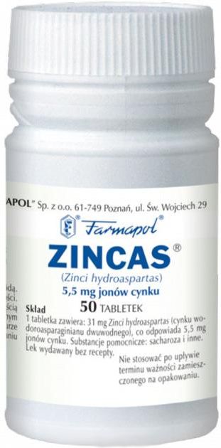 Zincas jest lekiem zawierającym cynk. Cynk jest mikroelementem. Reguluje wytwarzanie hormonu wzrostu oraz hormonów płciowych (jest niezbędny do wytwarzania plemników i komórek jajowych). Zmniejsza podatność organizmu na zakażenia i alergie. Wpływa na prawidłowe wydzielanie insuliny przez trzustkę. …