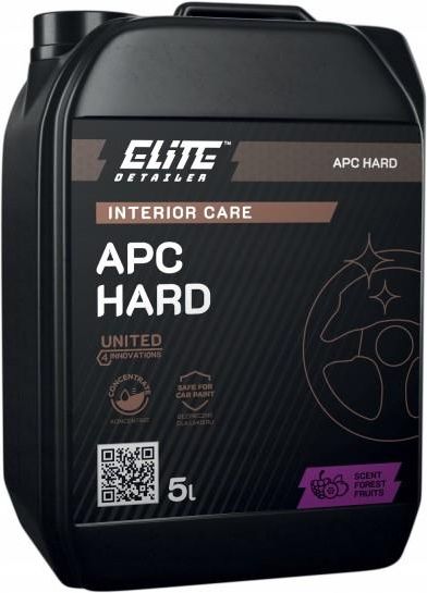 ELITE DETAILER - APC HARD 5LUNIWERSALNY ŚRODEK CZYSZCZĄCY DO CIĘŻKICH ZABRUDZEŃSkoncentrowany uniwersalny preparat myjący przeznaczony do ciężkich zabrudzeń kokpitów, plastików, winylu, tapicerek materiałowych oraz innych elementów wnętrza pojazdu o zapachu owoców leśnych. Nadaje się też do czyszczenia zabrudzeń na zewnątrz pojazdu.DOSTĘPNE POJEMNOŚCI: 1L, 5Lzapach: owoce leśneSposób aplikacji: butelka z atomizerem, mikrofibraTyp: KoncentratKategoria: INTERIOR CAREJAK UŻYWAĆ?Rozcieńczenie od 1:5-1:15Nanieś na czyszczoną powierzchnie za pomocą spryskiwacza lub uprzednio spryskanej ściereczkWypracuj produkt na powierzchni mikrofibrą lub pędzelkiemUsuń nadmiar czystą mikrofibrąPowyższy produkt powstał według idei UNITED 4 INNOVATIONS, która zakładała współpracę profesjonalnych salonów detailingowych z naszym działem produktów.W trakcie trwających ponad rok wspólnych prac w laboratorium spędziliśmy setki godzin na testowaniu produktów, aby stworzyć preparaty, które zadowolą nawet najbardziej wymagających odbiorców. Do stworzenia innowacyjnej serii chemii i kosmetyków samochodowych używamy surowców i komponentów największych, renomowanych producentów na świecie.Każdy z produktów, który oddajemy w Państwa ręce, jest owocem tej wyjątkowej współpracy ekspertów, wieloletnich praktyków i prawdziwych pasjonatów detailingu.