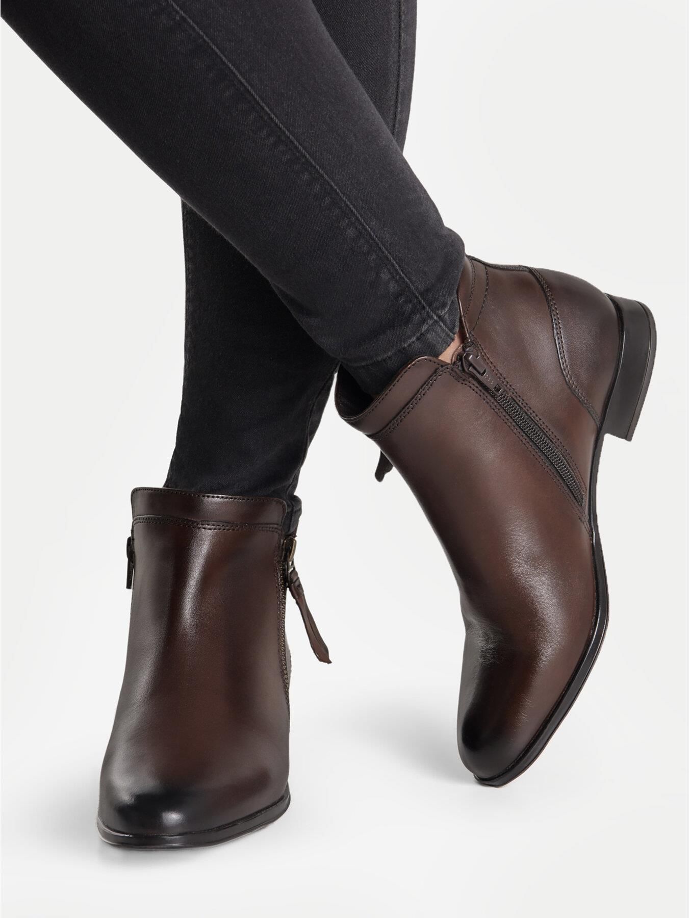 Marka Lasocki przygotowała dla Ciebie wyjątkowe botki damskie, które łączą w sobie styl i komfort. Te brązowe botki o casualowym charakterze wykonane są z wysokiej jakości skóry, co zapewnia trwałość i elegancki wygląd. Płaski obcas gwarantuje wygodę noszenia przez cały dzień, a zapięcie na suwak ułatwia szybkie zakładanie i zdejmowanie obuwia. To idealny wybór na co dzień, który doskonale uzupełni Twoje stylizacje i zapewni Ci komfort na każdym kroku. Wybierz botki Lasocki i ciesz się niepowtarzalnym stylem i wygodą każdego dnia! Lasocki to tradycja, najwyższa jakość i funkcjonalność. To jedna z najpopularniejszych polskich marek, której początki sięgają 1954 roku. Znana jest głównie z produkcji skórzanego obuwia i wyjątkowych akcesoriów. Produkty marki Lasocki reprezentują ponadczasową elegancję, ale też najnowsze trendy. Wieloletnie doświadczenie oraz wykorzystanie wysokogatunkowych materiałów – jak np. skórzane cholewki i wyściółki – gwarantują najwyższy komfort noszenia przez wiele sezonów! Podaruj swojej rodzinie wygodę na lata.