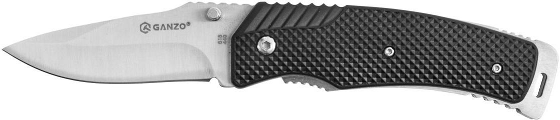 Model G618 to podstawowy nóż składany w ofercie marki Ganzo. Funkcjonala i użytkowa klinga oraz niezwylke wygodna rękojeść to główne cechy tego modelu. Ostrze wykonano ze stali nierdzewnej typu 440, której właściwe hartowanie zapewnia prawidłowe trzymanie ostrości, a ponowne naostrzenie noża nie bedzie stanowić problemu. Umiejscowony na ostrzu kołek umożliwa intuicyjne otwarcie ostrza. Na grzbiecie klingi producent umieścił rampę, która stanowi wygodne podparcie pod kciuk w trakcie oprerowania nożem. Ergonomiczna rękojesć wykonana jest ze stalowych przekładek do których przytwierdzono teksturowane okładziny wykonane z tworzywa sztucznego. Ną rękojeści producent umieścił funkcjonalny klips, umożliwiający bezpieczne przenoszenie noża. Blokada ostrza to sprawdzony system typu "liner lock".
