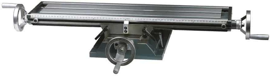 Dane techniczne: Długość: 945 mm Szerokość: 483 mm Wysokość 169 mm Wymiar rowka teowego: 12 mm Szerokość stołu: 180 mm Długość stołu: 700 mm Przesuw w osi X: 480 mm Przesuw w osi Y: 170 mm Masa netto: 49 kg Opis: - Rowek dla odpływu chłodziwa, - Prowadnica typu „jaskółczy ogon“, - Pokrętło z podziałką o skoku 0,05 mm.
