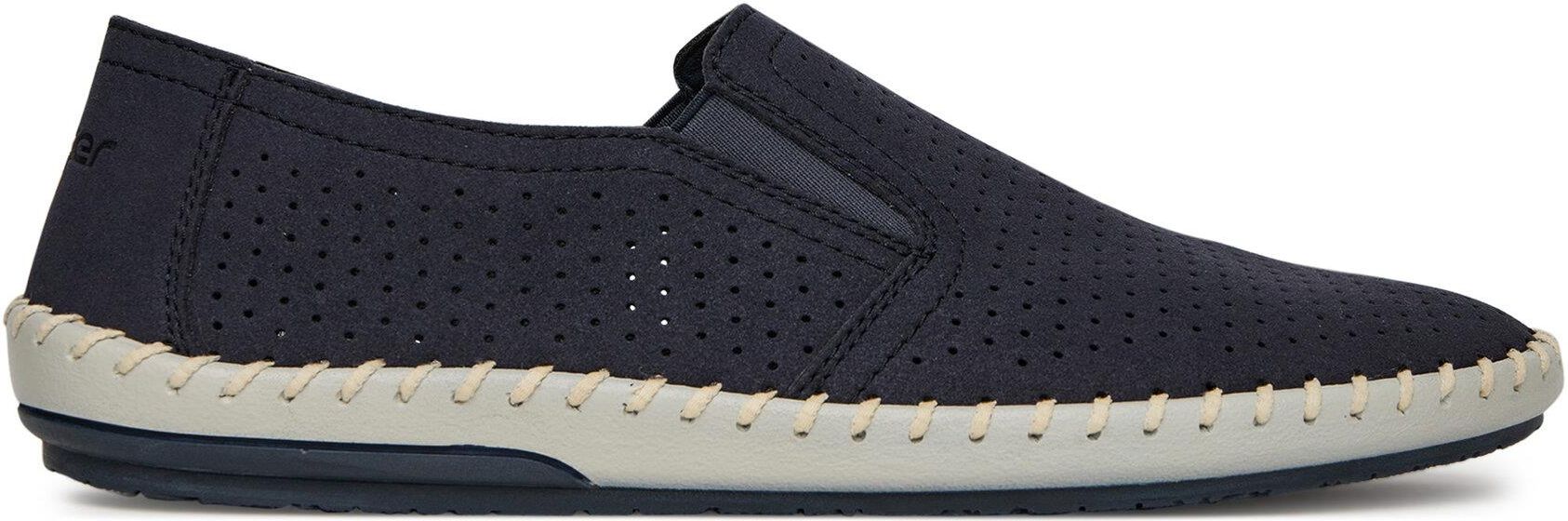 Granatowe półbuty męskie marki Rieker to synonim komfortu i stylu. Wykonane z wysokogatunkowego tworzywa syntetycznego, doskonale wpisują się w potrzeby współczesnego mężczyzny. Wyposażone w technologię Rieker Antistress, te buty są wyjątkowo elastyczne i lekkie, co zapewnia wygodę noszenia przez cały dzień. Amortyzacja redukuje stres i zmęczenie stóp, dzięki czemu idealnie sprawdzą się zarówno na co dzień, jak i podczas długotrwałego użytkowania. Granatowy kolor dodaje elegancji, a praktyczny design czyni je uniwersalnym wyborem na różne okazje. Wybierz półbuty Rieker i doświadcz niezrównanego komfortu oraz stylowej prezencji! Od ponad stu lat marka Rieker oferuje niezwykle komfortowe i trwałe obuwie, które powstaje z myślą o zdrowiu stóp. Dzięki wieloletniemu doświadczeniu w produkcji obuwia, ta niemiecka marka doskonale potrafi łączyć wygodę ze stylem, dlatego w ofercie znajdziesz buty w modnych, oryginalnych fasonach, które każdemu przypadną do gustu. Buty Rieker tworzone są z materiałów wysokiej jakości, przez co odznaczają się wyjątkową elastycznością i trwałością, ale też lekkością. Ponadto w obuwiu stosuje się szerszą formę zapewniającą odpowiednią stabilizację stopy, specjalne podeszwy absorbujące wstrząsy oraz odciążające stawy i kręgosłup, a także wyjmowane wkładki z pianki Memory Foam, która idealnie dopasowuje się do kształtu stóp. To doskonałe produkty dla tych, którzy ponad wszystko cenią sobie komfort. Przekonaj się!