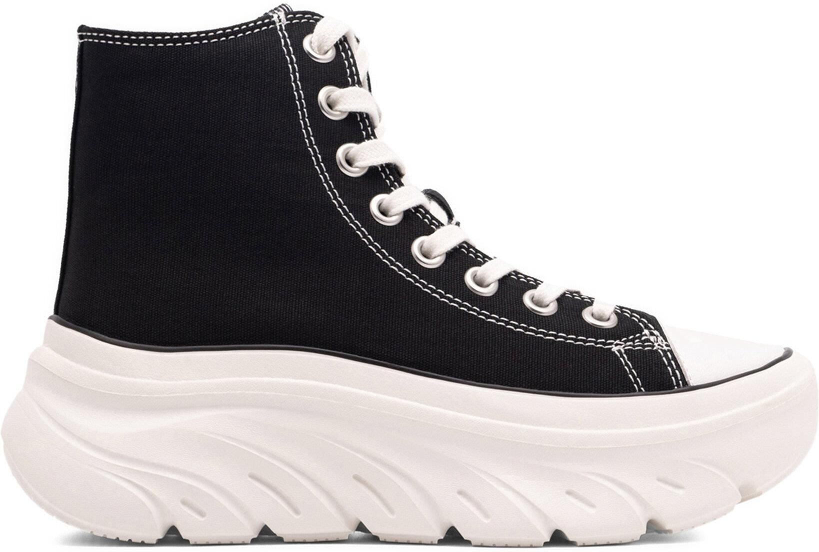Skechers to marka, która kojarzy się z wygodnym i stylowym obuwiem sportowym. Te czarne, wysokie buty z platformą na pewno Cię nie zawiodą! Zostały wykonane z przewiewnego, włókienniczego materiału, a ich wyjątkowy design sprawi, że będziesz się w nich czuła nie tylko dobrze, ale i modnie. Sznurowanie zapewni optymalne dopasowanie do stopy, a podeszwa z platformą doda Ci kilka centymetrów wzrostu. Komfort użytkowania zapewnią Ci z kolei zastosowane technologie oraz wysoka cholewka. Wybierz Skechers i ciesz się aktywnością z pełnym komfortem!