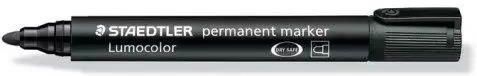 Marker permanentny Staedtler Lumocolor 352-9, czarnyIntensywny, bezwonny i nieoksyjny marker. Charakterystyka: DRY SAFE - możliwość pozostawania przez cały czas bez wysychania (test ISO 554) wodoszczelny , błyskawicznie schnie na prawie wszystkich powierzchniach idealy dla osób leworęcznych odporny na światło. Dane techniczne