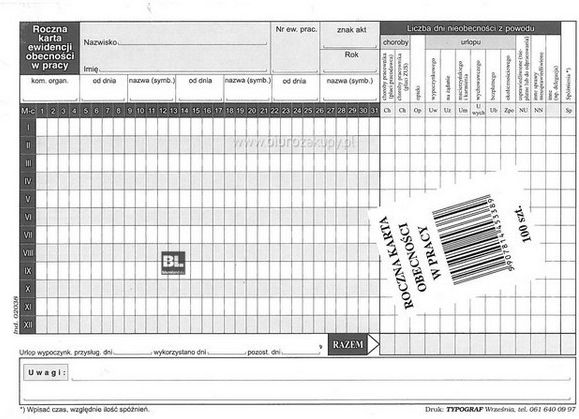 Opinie Typograf Druk Roczna Karta Obecności W Pracy A5 02038 A'100 Dobrodzień