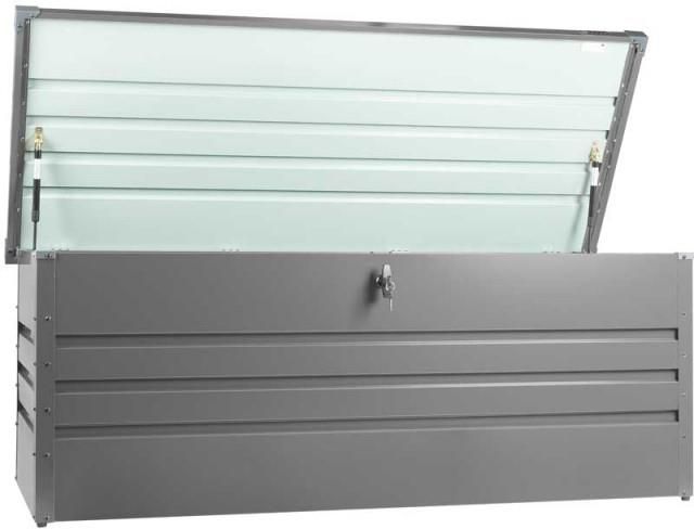 Skrzynia metalowa, pojemnik ogrodowy Zipper ZI-GAB165ANSkrzynia ogrodowa wykonana z ocynkowanej blachy, malowanej proszkowo dzięki czemu jest bardzo odporna na warunki atmosferyczne. Nada się do każdego ogrodu, dzięki estetyczności wykonania.Opis: Wykonana z ocynkowanej blachy, malowanej proszkowo Idealna na np. poduszki, podkładki do siedzenia, koce, narzędzia ogrodnicze Sprawdzi się jako pojemnik na zboże lub pasze w gospodarstwie Odporna na warunki atmosferyczne, szczelne zamknięcie Ustawiona na stopach 5 cm, zapewnia lepszą wentylację oraz suchą podłogę Klapa z siłowniami ułatwiającymi otwieranie Zamykana na klucz Dolna pokrywa wzmocniona 5 rozpórkami dla większej stabilności Maks. obciążenie do 80 kg Maks. obciążenie pokrywy 50 kg Dane techniczne: Wymiar montażowy: 1650 x 700 x 620 mm Pojemność: 720 l Kolor: Antracyt Waga brutto / netto: 42 / 37 kg